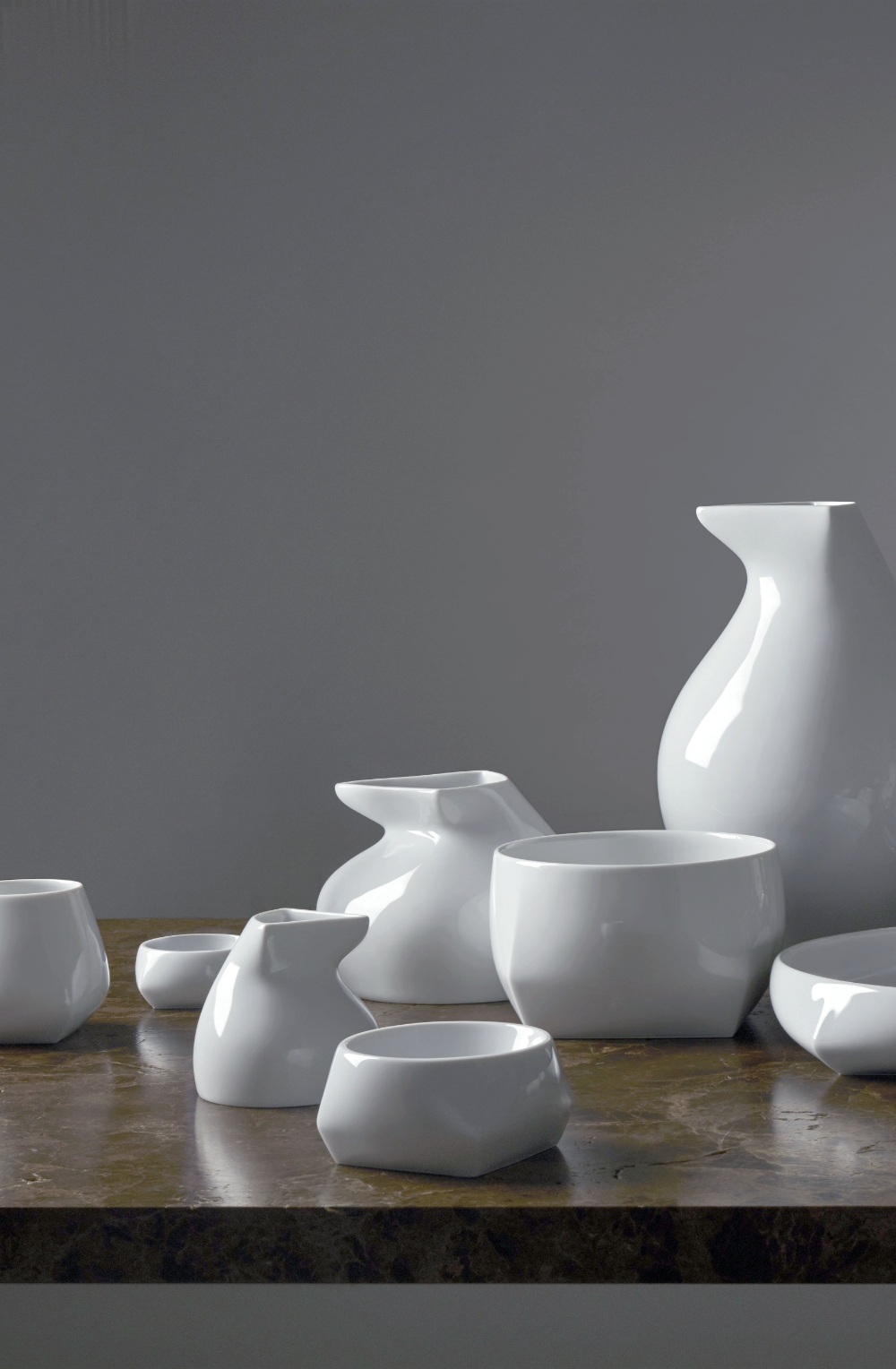 width="1920" height="2667" />AntarcticaDie Leitidee zur Entwicklung der „Antarctica“ Kollektion kam Zhuoyu Hou beim Anblick einer Pinguinfamilie im arktischem Eis – Papa, Mama, ein großer und ein kleiner Bruder. Die Silhouette der Pinguine verwandelte sie in ihren ersten Skizzen zu Krügen und Vasen. Die geschwungenen Kurven stehen dabei im Kontrast zu den kantigen Öffnungen und visualisieren den Bauch und Kopf der Pinguine. Ihre ersten Modelle aus Ton zeigten, wie spannungsvoll die organische Formensprache mit ihren Rundungen im Kontrast mit den eckigen, geradlinigen Elementen auf den Betrachter wirkten. Da Ton sehr flexibel und anpassungsfähig ist, konnte sie in ihrer Arbeit nicht nur ein optisch ansprechendes Design schaffen, sondern auch direkt die Haptik berücksichtigen. Denn passen die Proportionen des Porzellans zur Handhabung wird es häufiger benutzt. Was wiederum, so Zhuoyu Hou, die Schönheit der Designstücke verstärkt. Mit diesem Anspruch hat die Designerin Krüge entwickelt, die vielseitig einsetzbar sind. Ob als Vase, Wasserkaraffe, Milchkännchen oder Sauciere, die Gefäße werden im modernen Interieur zu einem absoluten Blickfang.