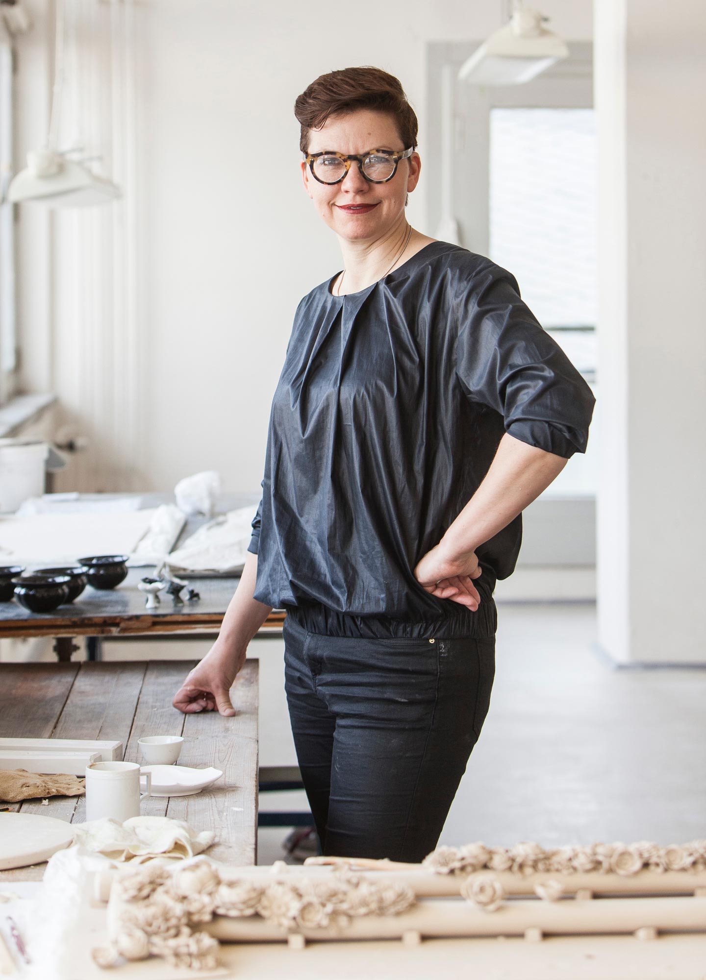 Jen RayNachdem sie zunächst auf Porzellan malt, kreiert die amerikanische Künstlerin Jen Ray (1970) eine Skulptur auf der Grundlage von etwas ganz Alltäglichem: Mit ihrer Axt-Serie schafft sie eine Verbindung zur Geschichte der Objekte der Manufaktur sowie zur modernen Form der Axt und der Kraft die sie ausstrahlt. Dabei lässt sie das Robuste und Derbe mit dem Sinnlichen und Organischen verschmelzen. Die Form wird schließlich mit eigens entworfenen Dekoren versehen sowie in einer Variante mit handgeformten Porzellanblumen besetzt - Bezug nehmend auf die Vergänglichkeit der Dinge, die in Rays Arbeiten zentrales Thema darstellt. In ihren großformatigen Zeichnungen, Skulpturen, Video- und Performanceinstallationen erschafft Ray eine Welt in der militante Amazonen durch dystopische Landschaften marschieren, Fantasieräume von Rebellen besetzt werden und Provokateure in prächtiger Dekadenz posieren. -