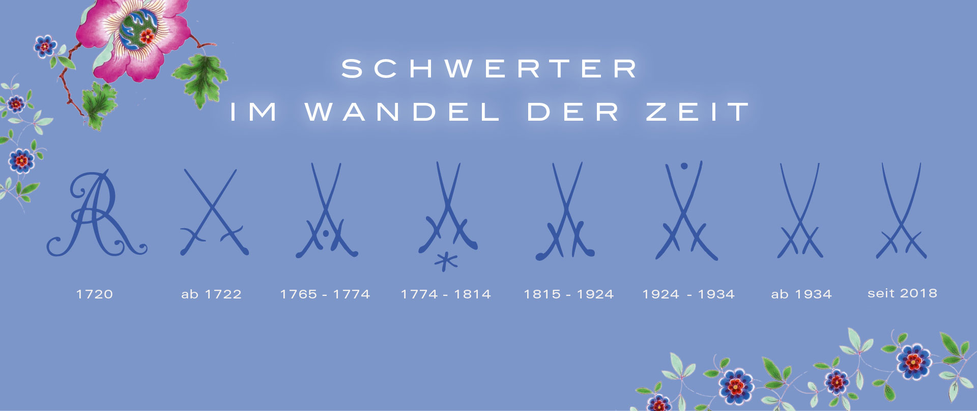 So feiert MEISSEN in diesem Jahr das „300 Jahre Schwerter-Jubiläum“ und legt besonderes Augenmerk auf den Wandel der Schwerter im Laufe der Jahrhunderte – sie blieben stets wiedererkennbar und ikonisch, doch erzählt die Schwerter-Entwicklung von verschiedenen Epochen und dem reichen Erbe der Manufaktur. Nachdem die sächsischen Kurschwerter 1722 eingeführt wurden, kennzeichnete man die Porzellane ab 1765 bis 1774 mit der so genannten „Punktschwertermarke“ als Originale, wobei die genaue Bedeutung des Punktes bis heute ein Mysterium ist. Es ist die erste große Blütezeit Meissens: unter der Leitung von Johann Gregorius Höroldt entstehen erste hitzebeständige Unter- und Aufglasurfarben mit denen ungeahnt farbenprächtige Dekore wie die „Chinoserien“ oder das „Zwiebelmuster“ möglich waren. Johann Joachim Kaendler erschuf das Opus Magnum deutscher Barockkunst – das „Schwanenservice“ mit über 2.200 Einzelteilen – sowie eine der herausragendsten Arbeiten aller Zeiten, die „Schneeballblüten“.