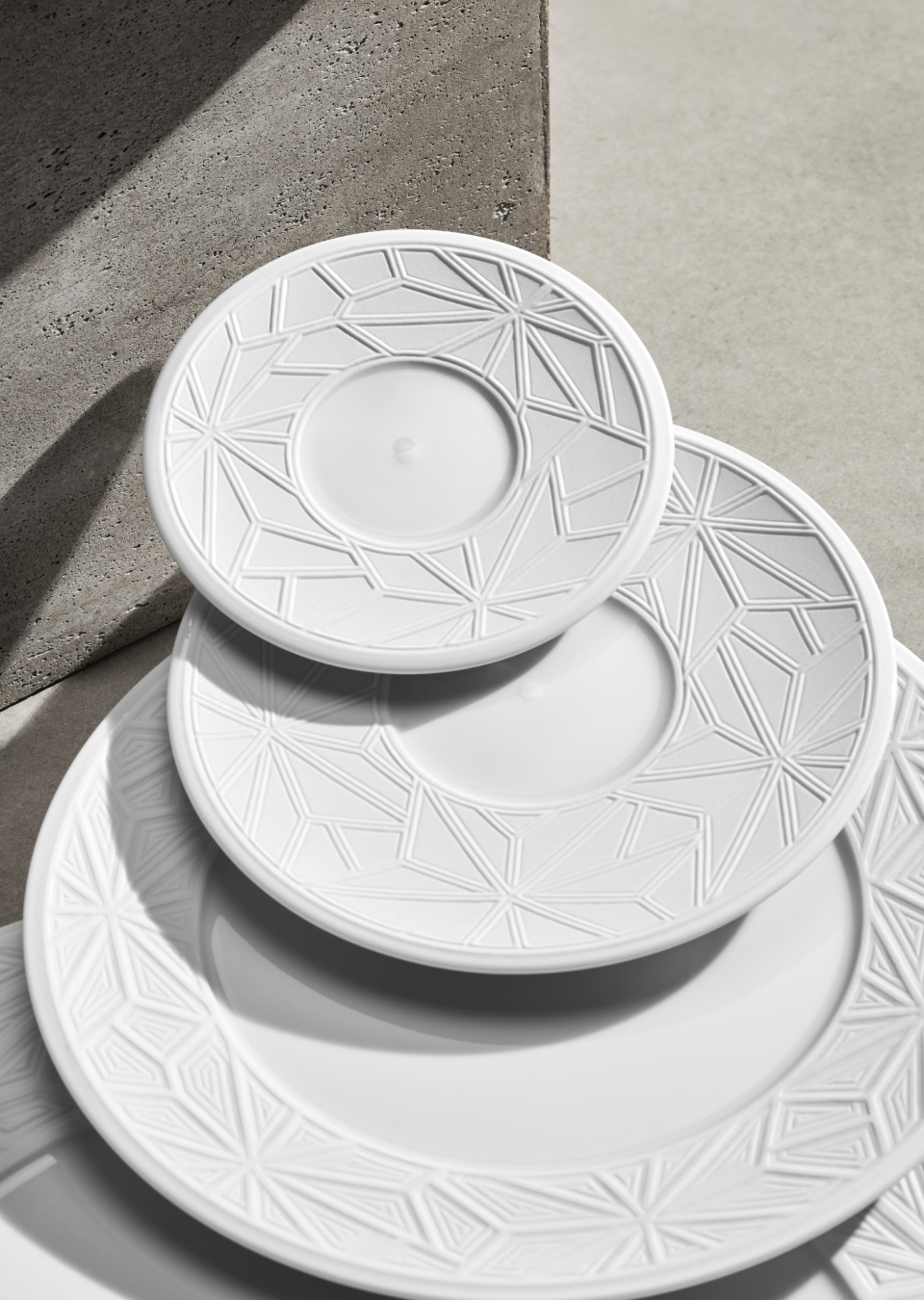 Wellenspiel Relief BiskuitIn der Serviceform „Wellenspiel“ finden sich zahlreiche Elemente und Strukturen historischer Meissener Formen und Service, die erstmals in einer zeitgenössischen Formgebung zusammengefasst wurden.