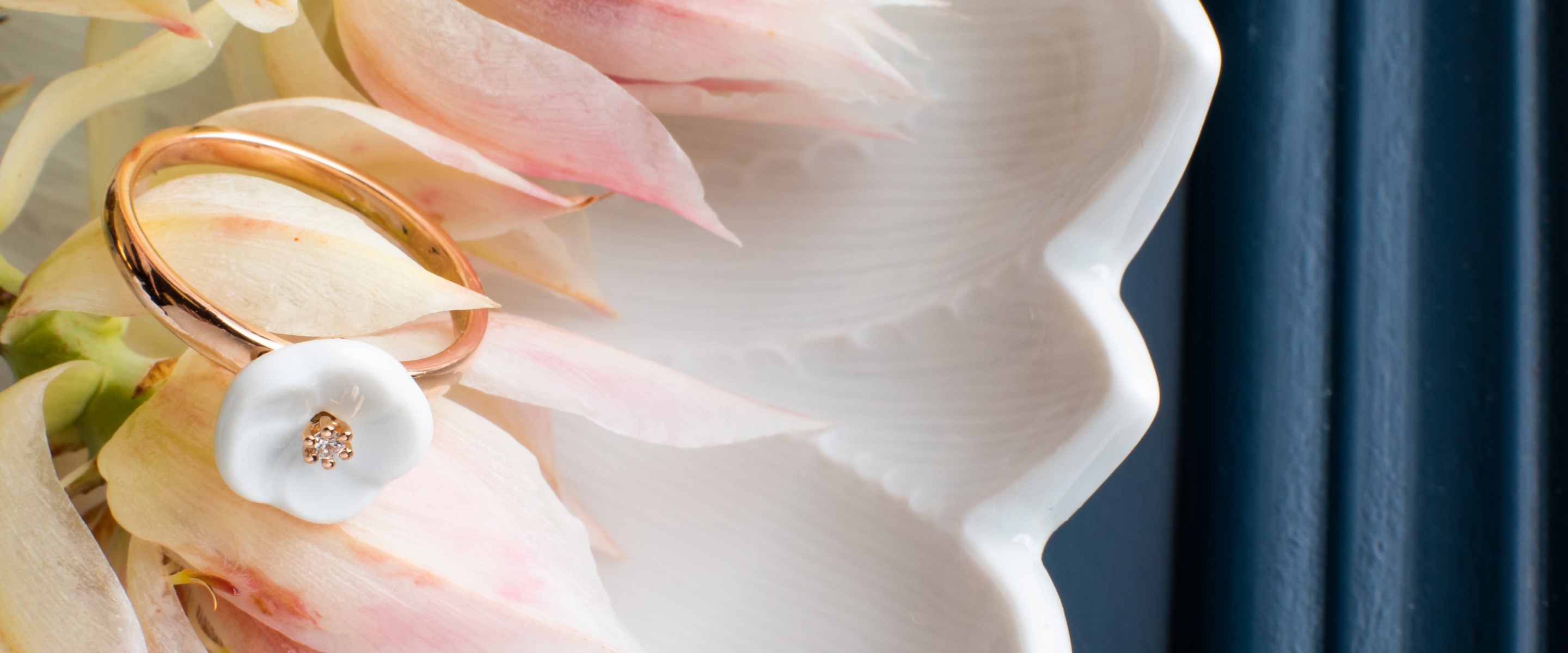 Ringe gehören mit zu den ältesten Schmuckstücken der Welt und sind nicht nur ein Symbol der Liebe und Verbundenheit. Sie können auch die Glaubensrichtung, Reichtum, Macht oder die eigenen Ideale symbolisieren. Ausschlaggebend sind sowohl das Material als auch das Design, welches jedem Ring seine spezifische Bedeutung verleiht. Ob Freundschaftsring, Siegelring, Ehering, Taufring oder Familienring – jeder Ring steht für sein ganz eigenes Versprechen. Aber das wohl romantischste Versprechen symbolisiert der Verlobungsring – er steht für ewige Liebe, Zuneigung und Wertschätzung. Der Ring an sich wurde schon in der Antike aus einem Guss kreisförmig geschmiedet – ohne Anfang und Ende – und war damit ein Zeichen enger Verbundenheit. Aus dieser Zeit stammt auch der Ritus, den Ring an den Ringfinger der linken Hand zu stecken. Dem Glauben nach ist dieser Finger durch eine Vene direkt mit dem Herzen verbunden. Darüber hinaus gilt die linke Körperhälfte als die Herzseite – wo alle Gefühle ihren Platz finden. Mit dieser romantischen Botschaft ist es insbesondere der Verlobungs- oder Ehering, der seinen Platz an diesem Finger findet. Auch unsere Schmuckkollektion „1739 Royal Blossom“ war einst ein Versprechen ewiger Liebe und hat ihren Ursprung in der wohl bekanntesten Liebesgeschichte der Porzellanmanufaktur. Geschaffen 1739 von Johann Joachim Kaendler zierten die originalen Schneeballblüten einst das prunkvolle Service, das König August III. als Geschenk für seine geliebte Gemahlin Maria Josepha in Auftrag gab. Fast 300 Jahre später wird das Symbol dieser romantischen Geste – die ikonische Porzellanblüte – in unserer Manufaktur in einzigartige Schmuckstücke verwandelt. Aber bevor die zarte Schneeballblüte den goldenen Ring ziert, wandert sie durch viele Hände. Die Blüte wird mit großer Wertschätzung für das Material von Hand geformt, mit den blauen Schwertern gekennzeichnet, gebrannt, glasiert und mit einem Diamantblumenstempel gekrönt. Das macht jedes Schmuckstück zu einem kleinen Unikat – das der Beginn Ihrer ganz persönlichen Liebesgeschichte sein kann.