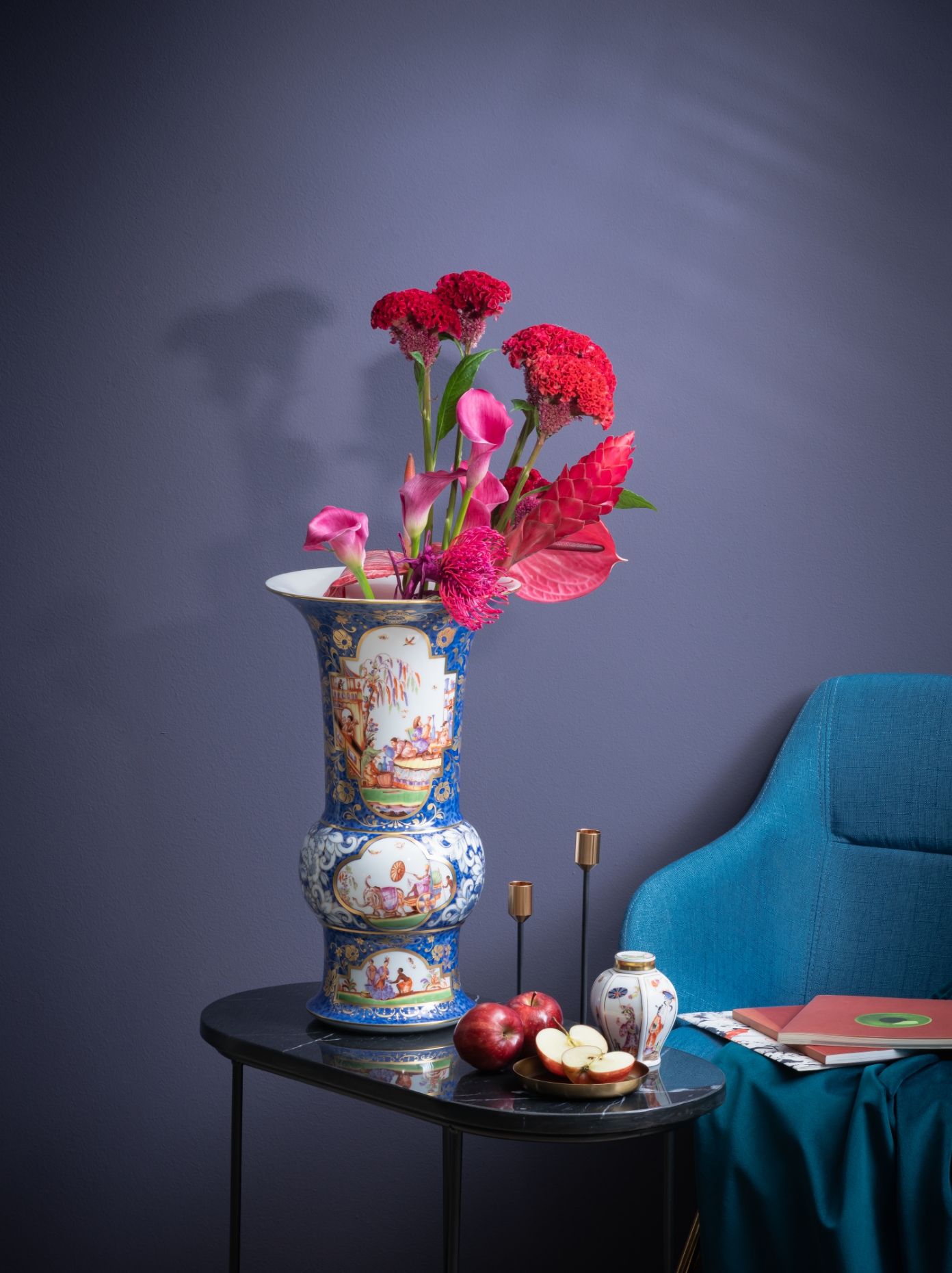Die exotischen Dekore von damals sind immer noch wie eine unendliche Geschichte auf Porzellan, die jedem Betrachter Freiraum gibt, seiner Fantasie freien Lauf zu lassen und auf Entdeckungsreise zu gehen.