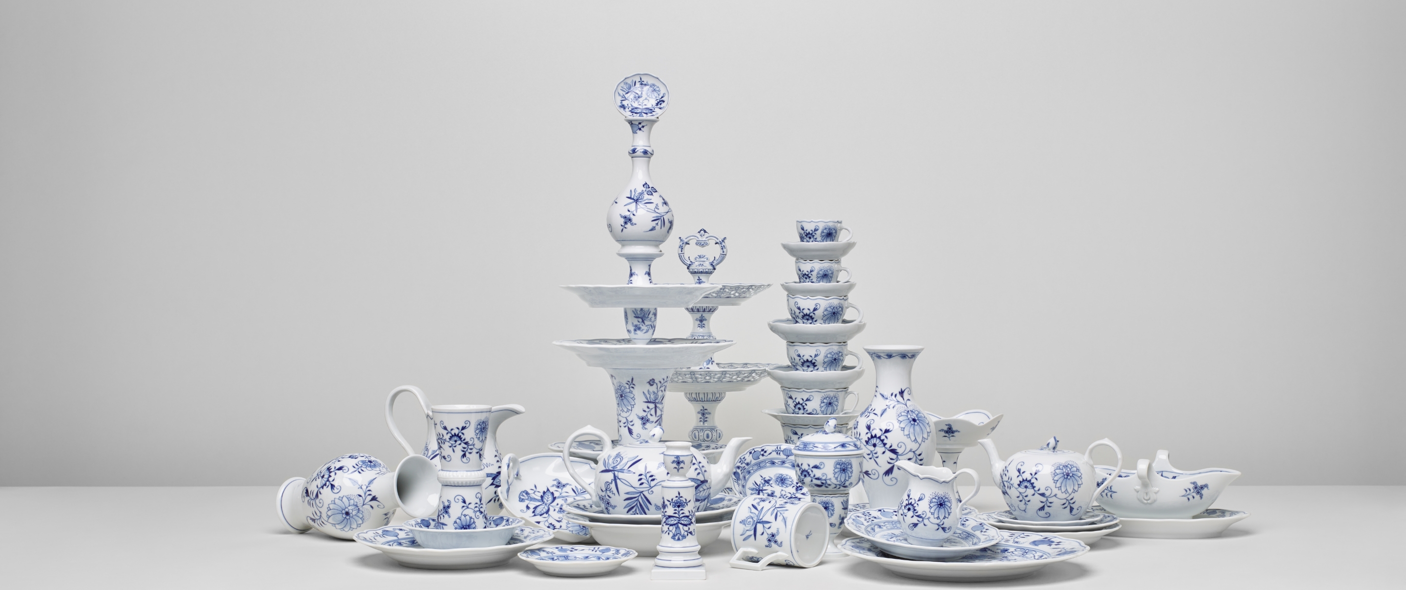 Eines der berühmtesten Dekore Meissener Handwerkskunst ist das blaue „Zwiebelmuster“. Es ist 1731 entstanden und umfasst eine Fülle von Naturmotiven, Symbolen und Gleichnissen. Dargestellt in diesem Dekor werden in Anlehnung an das ostasiatische Vorbild die drei gesegneten Früchte: Granatapfel, Pfirsich und Zitrusfrucht. Der Pfirsich galt als Zeichen der Lebendigkeit, der Granatapfel als Symbol der Fruchtbarkeit und die Zitrusfrucht als Buddhazeichen. All diese drei Früchte wurden im 17. und 18. Jahrhundert in den europäischen Orangerien des Adels gezüchtet. Aber ob die fernöstliche Bedeutung der Früchte bekannt war ist zweifelhaft, denn der Granatapfel und die Zitrusfrucht sind bei der Gestaltung über die Jahre miteinander verschmolzen und ähnelt nun eher einer Melone. Heute ist das „Zwiebelmuster“ Ausdruck des Genius und Erfindergeists der traditionsreichsten Porzellanmanufaktur Europas und wird in den verschiedenen Dekoren immer wieder aufgegriffen.