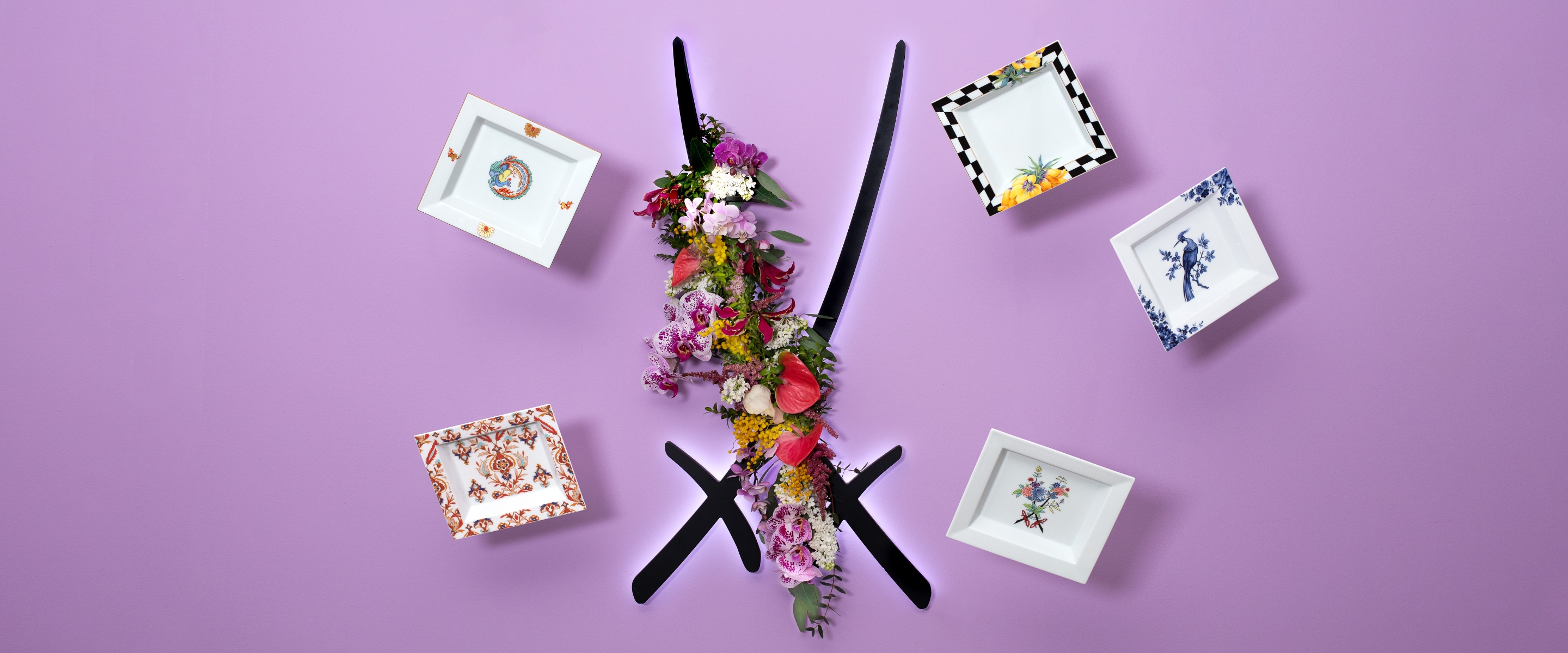 Voller Symbolkraft erstrahlt der weltbekannte Ming-Drache in leuchtendem Purpur auf verschiedensten Porzellanen und hat als Zeichen für Licht, übernatürliche Weisheit sowie den Geist der Veränderung eine magische Wirkung. Auch um den stolzen Phönix, der den neuen Henkelbecher und die Vide-Poche „Phoenix“ schmückt, ranken sich mitreißende Sagen, die von der Unsterblichkeit oder Wiederauferstehung berichten. Indische Blumenmalerei fasziniert mit intensiven Farben und stilisierten Motiven, die etwas Geheimnisvolles zum Ausdruck bringen und dazu einladen, mehr über diese verwunschene Blumenwelt zu erfahren.