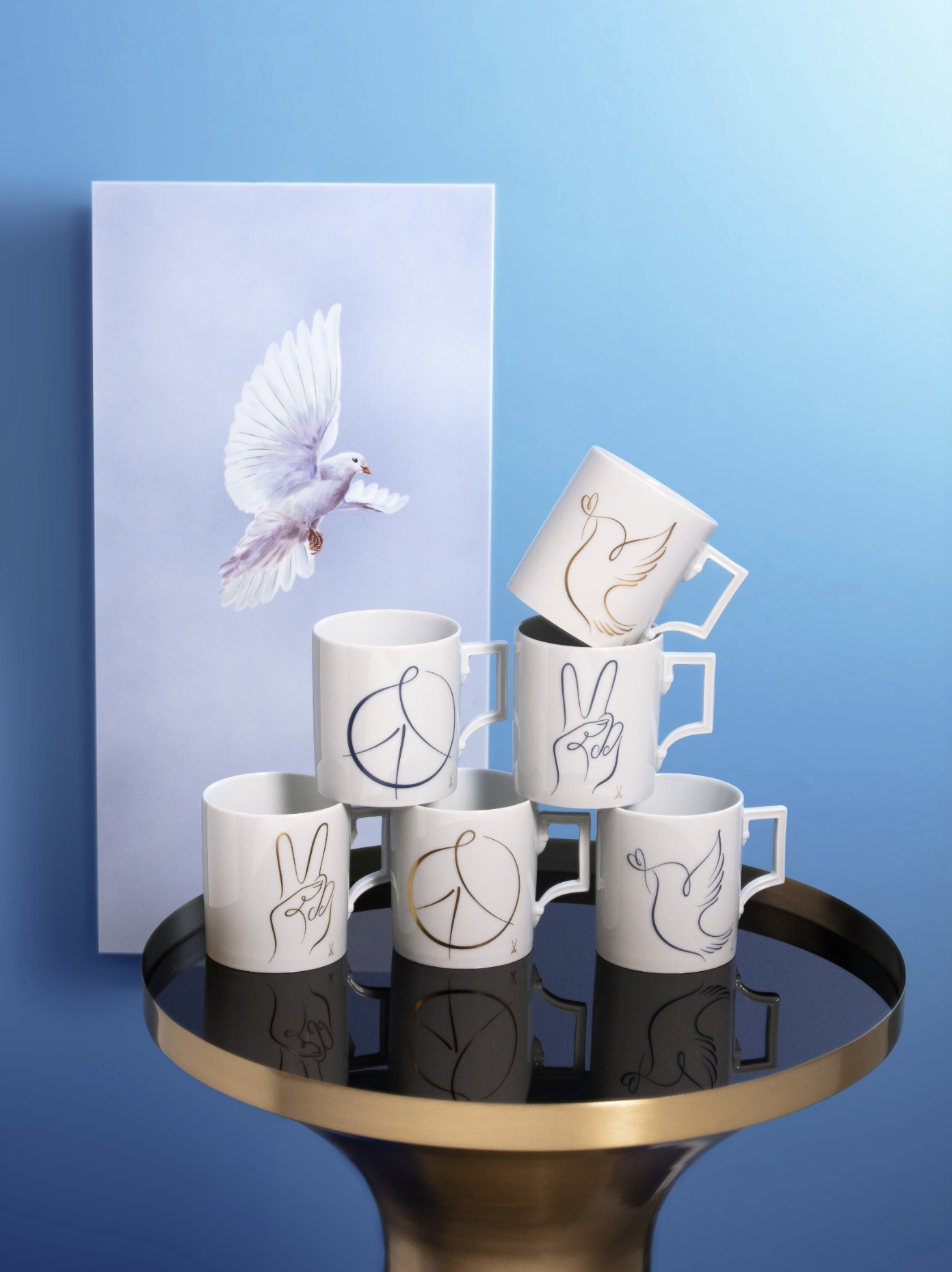Wir sind tief getroffen und erschüttert von dem Leid und der Verzweiflung, welches die Menschen durch den Krieg in der Ukraine gerade erfahren. Wir möchten uns solidarisch mit den Menschen in der Ukraine zeigen und haben uns entschieden, auch aktiv zu unterstützen. Unsere hochtalentierten Auszubildenden haben in kürzester Zeit verschiedene Friedenssymbole, die als Porzellandekore geeignet sind, entwickelt. Aus den vielen Vorschlägen haben wir uns für drei Friedenssymbole entschieden. Diese zeigen wir in Blau und Gold auf unseren beliebten Mugs. Sie setzen das Zeichen, dass wir für Frieden einstehen und den Menschen in der Ukraine, die verzweifelt sind, Angst haben und sich hilflos fühlen, zur Seite stehen. So werden wir 20% des Erlöses aus dem Verkauf dieser Mugs der Hilfsaktion „Nothilfe Ukraine“ des „Deutschen Roten Kreuzes“ spenden. Auch unser handgemaltes Wandbild „Friedenstaube“ steht symbolisch für Frieden und wird Teil der Spendenaktion werden. Hier gehen auch 20% des Erlöses aller verkauften Wandbilder an die „Nothilfe Ukraine“ des „Deutschen Roten Kreuzes“.