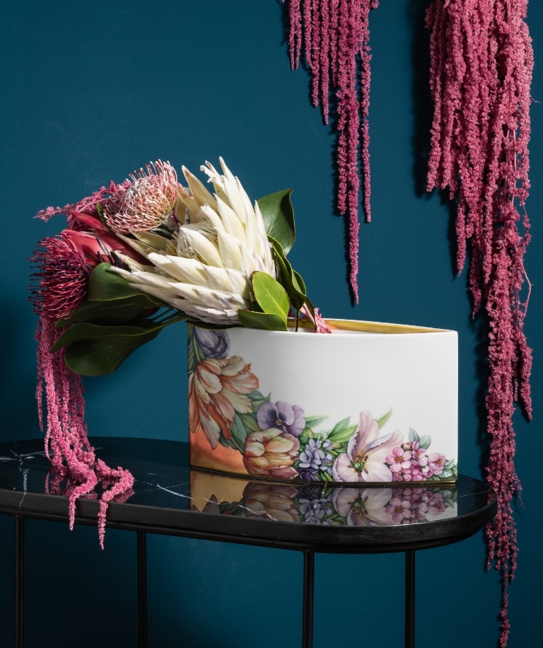Unsere zahlreichen Tisch- und Tafelservice sowie Vasen Kollektionen bieten eine unvergleichliche Varianz, um auch zu Tisch Opulenz und Farbenpracht nach Belieben zusammenzustellen: Wie etwa in der Kombination historischer und zeitgenössischer Formen und Dekore – das barocke „Schwanenservice“ mit der edlen „Mesh-Gold“ Variante der „MEISSEN Cosmopolitan“ Serie – oder der Kombination unterschiedlicher Dekorvarianten innerhalb eines Service wie das rein weiße „MEISSEN Cosmopolitan“ mit den Dekorvarianten „Mesh-Platin“ und „Giant Bloom“ oder der anmutige „Royal Blossom“ Dekor mit dem kobaltblauen „Noble Blue“. Der eigenen Kreativität und den persönlichen Vorlieben sind hierbei keine Grenzen gesetzt.