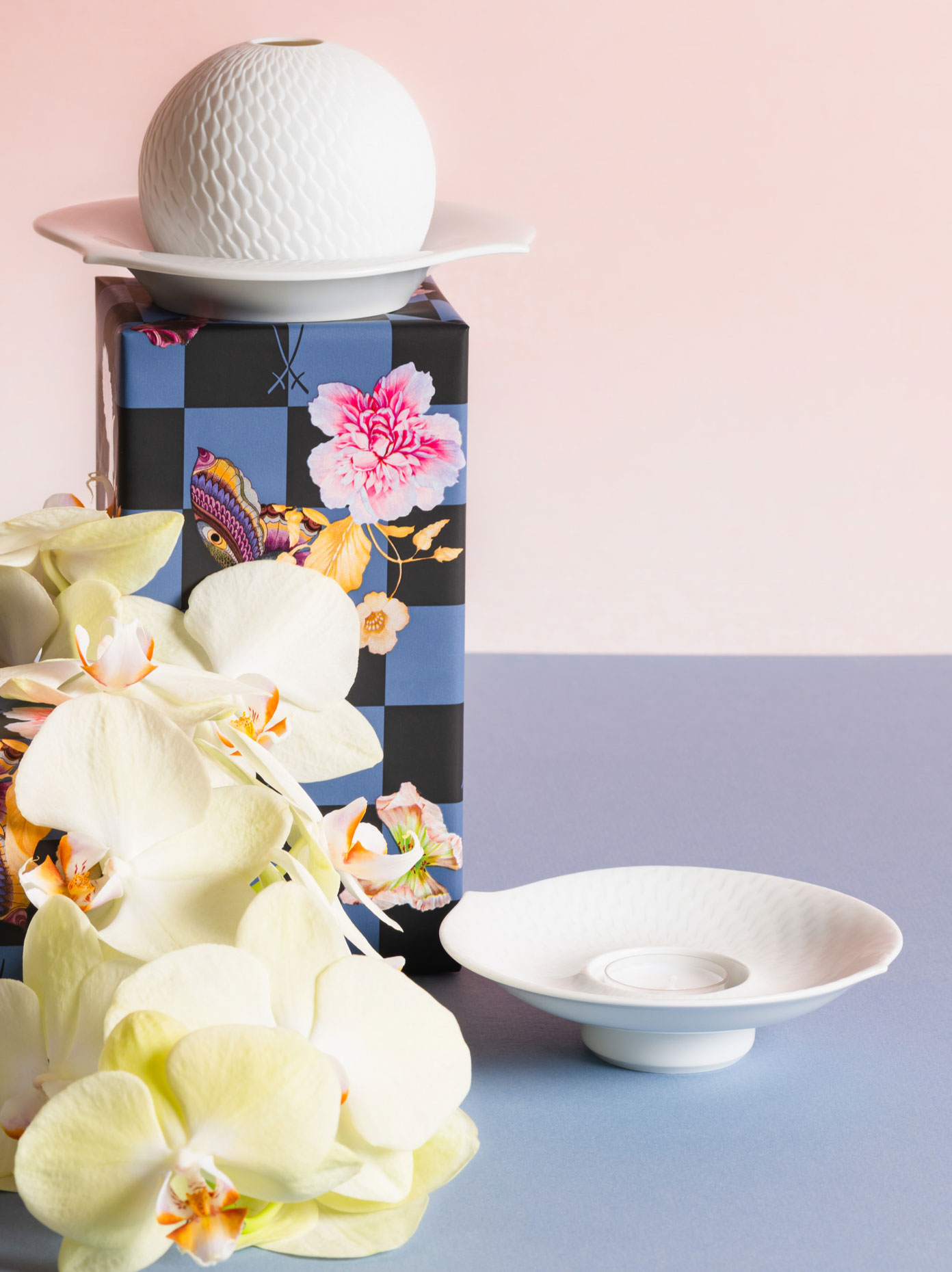 Besonders in den herbstlichen Abenden können uns sanfte Lichter in eine Aura von Wärme und Geborgenheit hüllen. So können Sie mit dezenten Lichtquellen auf den Tischen und Ablagen ein kleines Lichtermeer erzeugen, das Ihren Raum in ein behagliches Ambiente taucht. Also schalten Sie die Festbeleuchtung aus und nutzen Sie zum Beispiel unsere Tischleuchte aus der "MEISSEN® Cosmopolitan" Serie. Mit klarer Linienführung und dekorativen Ausschwüngen ist diese Tischlampe an die Formensprache moderner Hotels angelehnt und versprüht damit ein hohes Maß an Eleganz. Aber auch mit kleinen Lichtern, wie mit dem "Royal Blossom“ Windlicht oder dem Teelicht aus der "Wellenspiel Relief" Kollektion schaffen Sie eine magische Atmosphäre, die Sie in den Bann des Herbstes zieht.