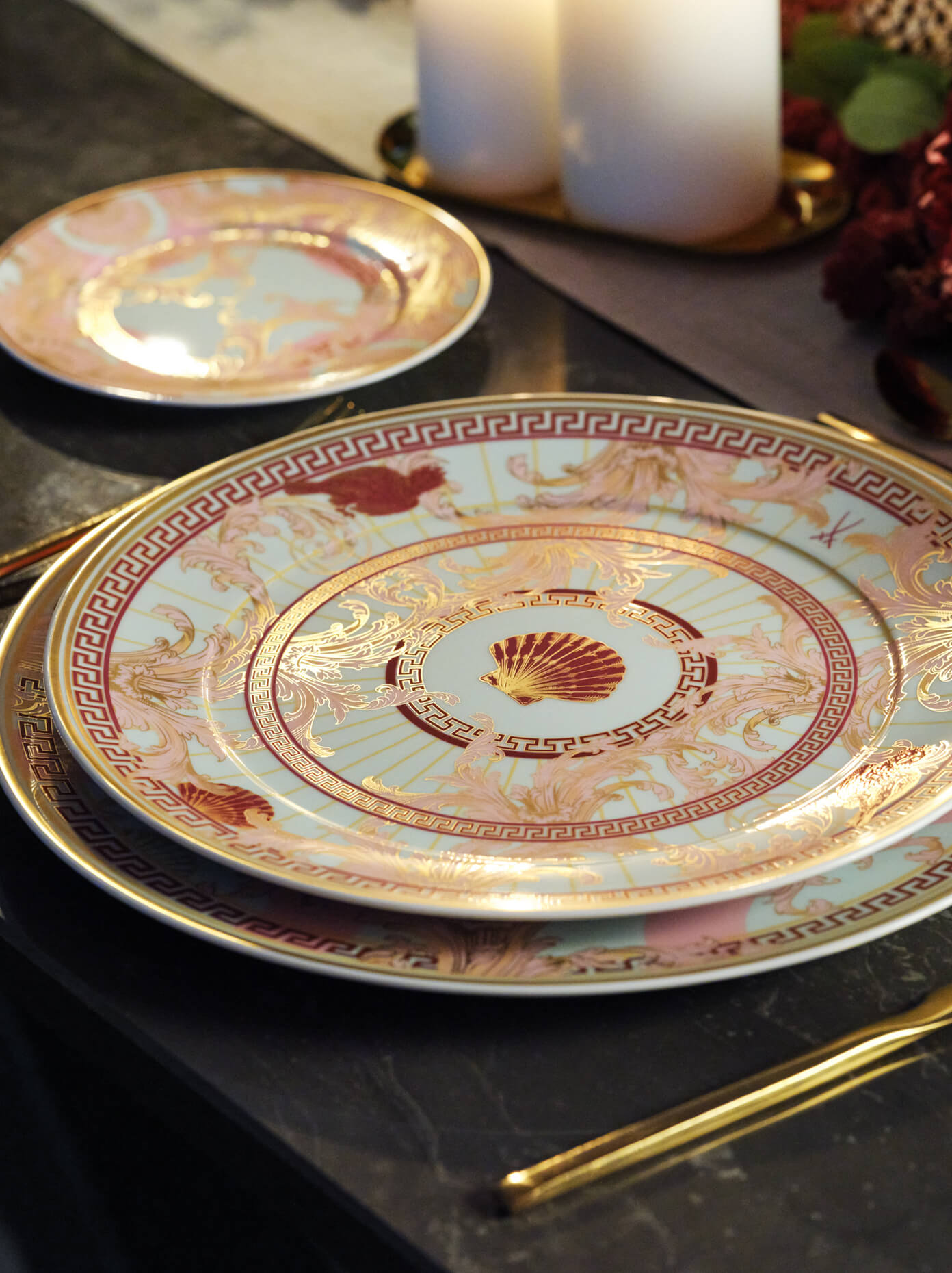 Im Mittelpunkt dieses detailverliebten Dekors steht neben prächtigen Rocaille-Elementen und eleganten Muscheln eine Welt einzigartiger und einfallsreicher Fabelwesen – von der geflügelten Löwin, über vogelartige Kreaturen bis hin zu Fischen mit drachenartiger Anmut. Emotional und naturverbunden, mit einem Hang zum Fantastischen, wie einst die Werke des französischen Bildhauers Michel Joseph Napoléon Liénard.