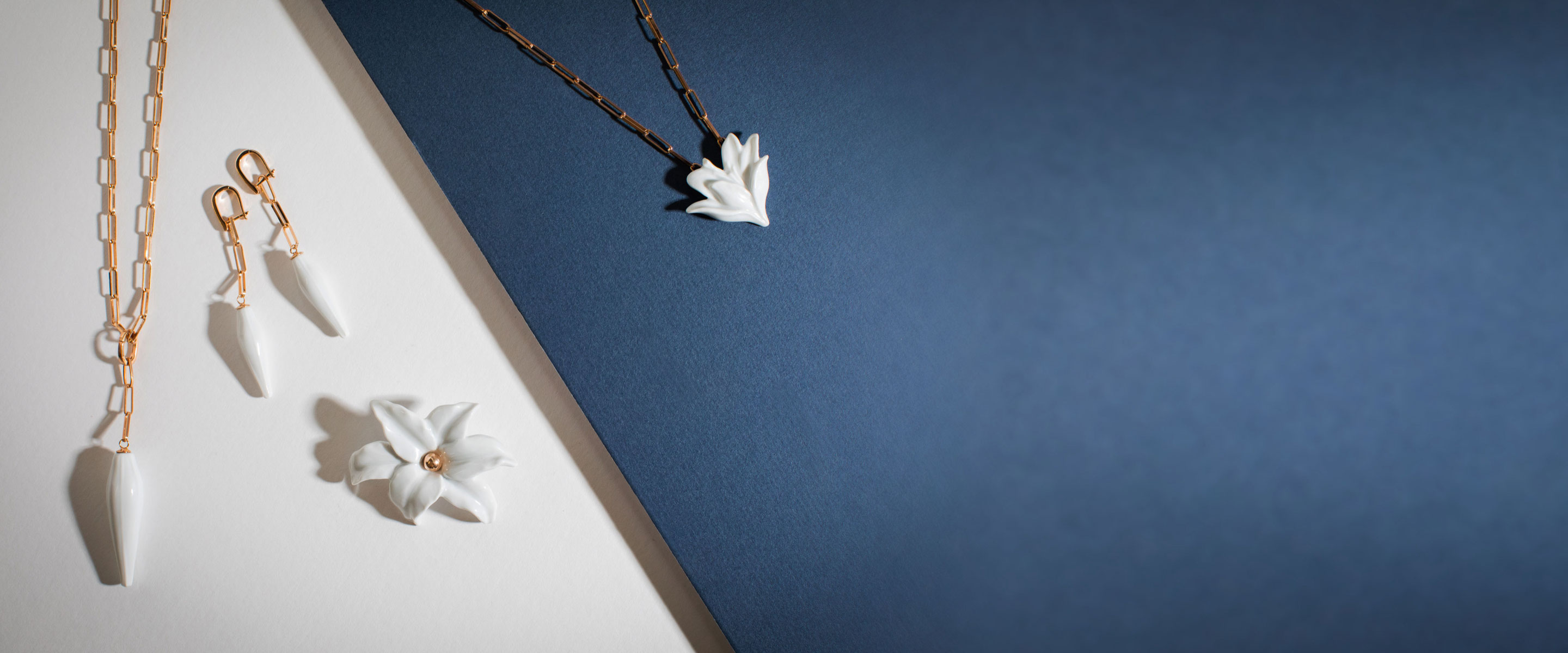 Schmuck zählt zweifelsohne zu den beliebtesten Geschenken - ob zu Weihnachten, zum Jahrestag oder anderen festlichen Anlässen. Ein zeitloses Präsent, das nicht nur die Eleganz und Einzigartigkeit der Trägerin betont, sondern auch tiefe Emotionen und unvergessliche Erinnerungen hervorruft. Schon in den frühen Jahren nach Gründung der Porzellanmanufaktur, wurde auch bei MEISSEN damit begonnen, die Herstellung von modischen Accessoires aus dem neu entdeckten Material zu fertigen – federführend durch den damaligen königlichen Hofjuwelier und Goldschmied Johann Jacob Irminger. Heute wie damals werden die Schmuckstücke in feinster Handarbeit gefertigt. Dabei verbinden sich klassische Motive und Dekore mit zeitgenössischer Formensprache zu einer einzigartigen Schönheit.