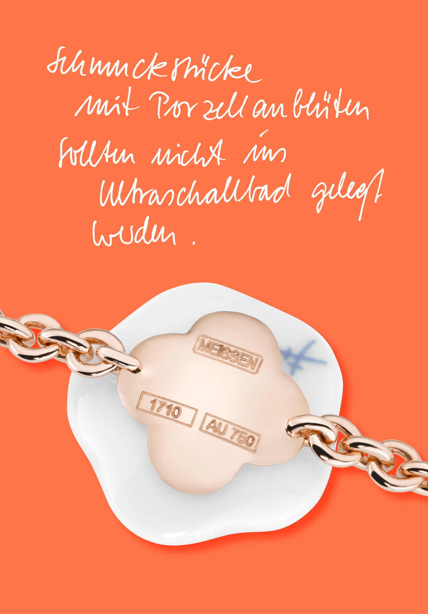 "Sorgfalt im Umgang und materialgerechte Pflege garantieren den bleibenden Wert Ihrer MEISSEN Schmuckstücke als generationsübergreifende Liebhaberstücke."