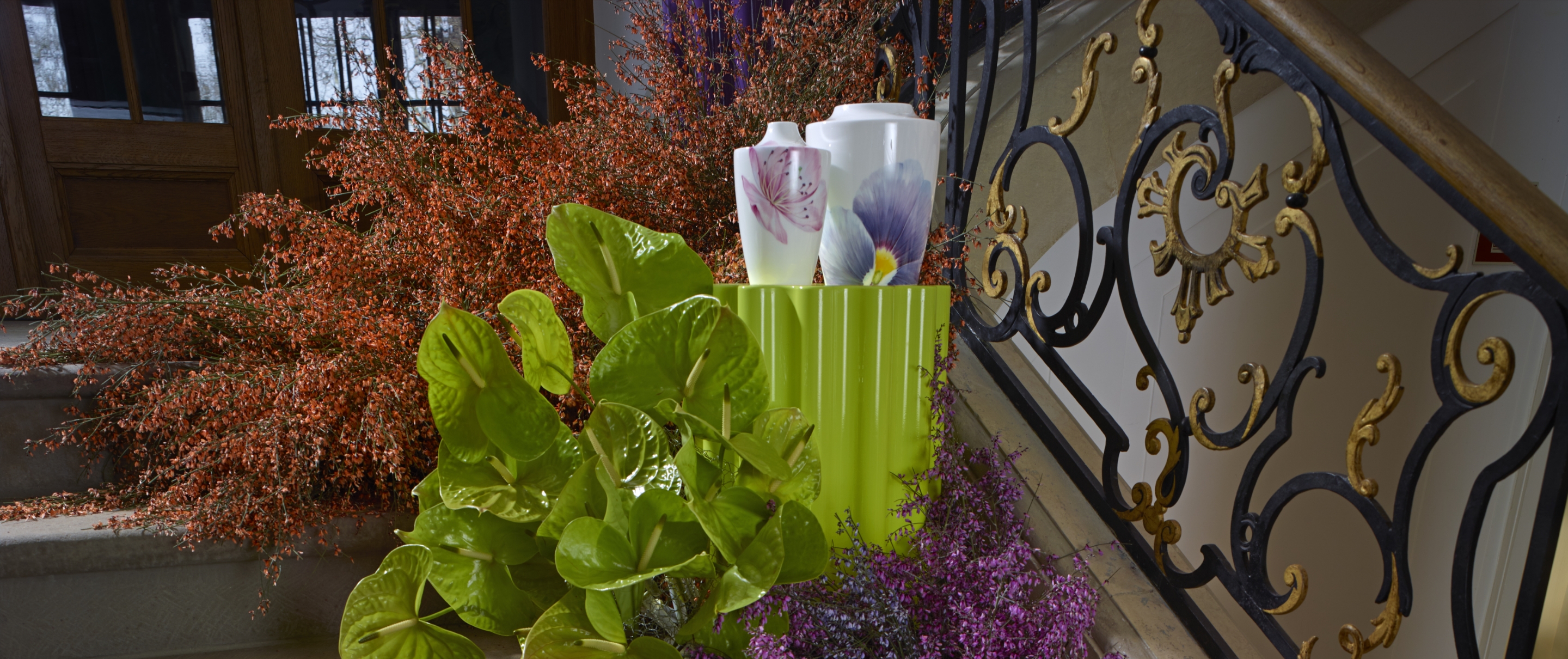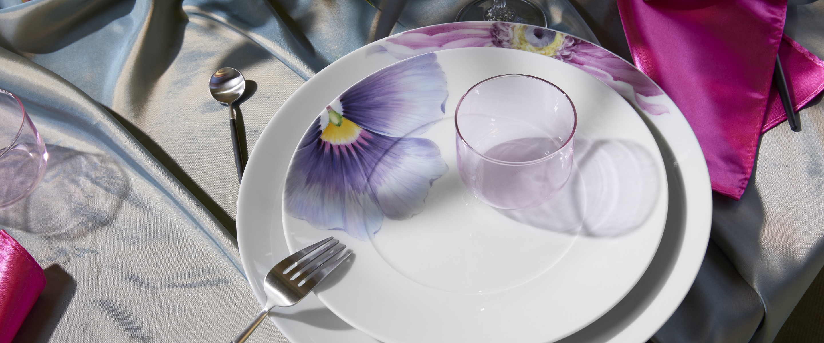 Die neue Trendfarbe passt ideal zu Weiß oder Creme und schafft in der richtigen Komposition ein geradezu magisches Ambiente auf dem heimischen Tisch. Kombinieren Sie bewusst eine blauviolette Tischdecke mit unserem „Giant Bloom“ Service, violetten Servietten und goldenem Besteck. Sie werden merken, wie die kräftigen violetten Akzente in Verbindung mit der zarten Farbgebung der großflächigen Blumenmalerei scheinbar eine Tür zu einer anderen Welt voller Fantasie und Magie zu öffnen vermögen.