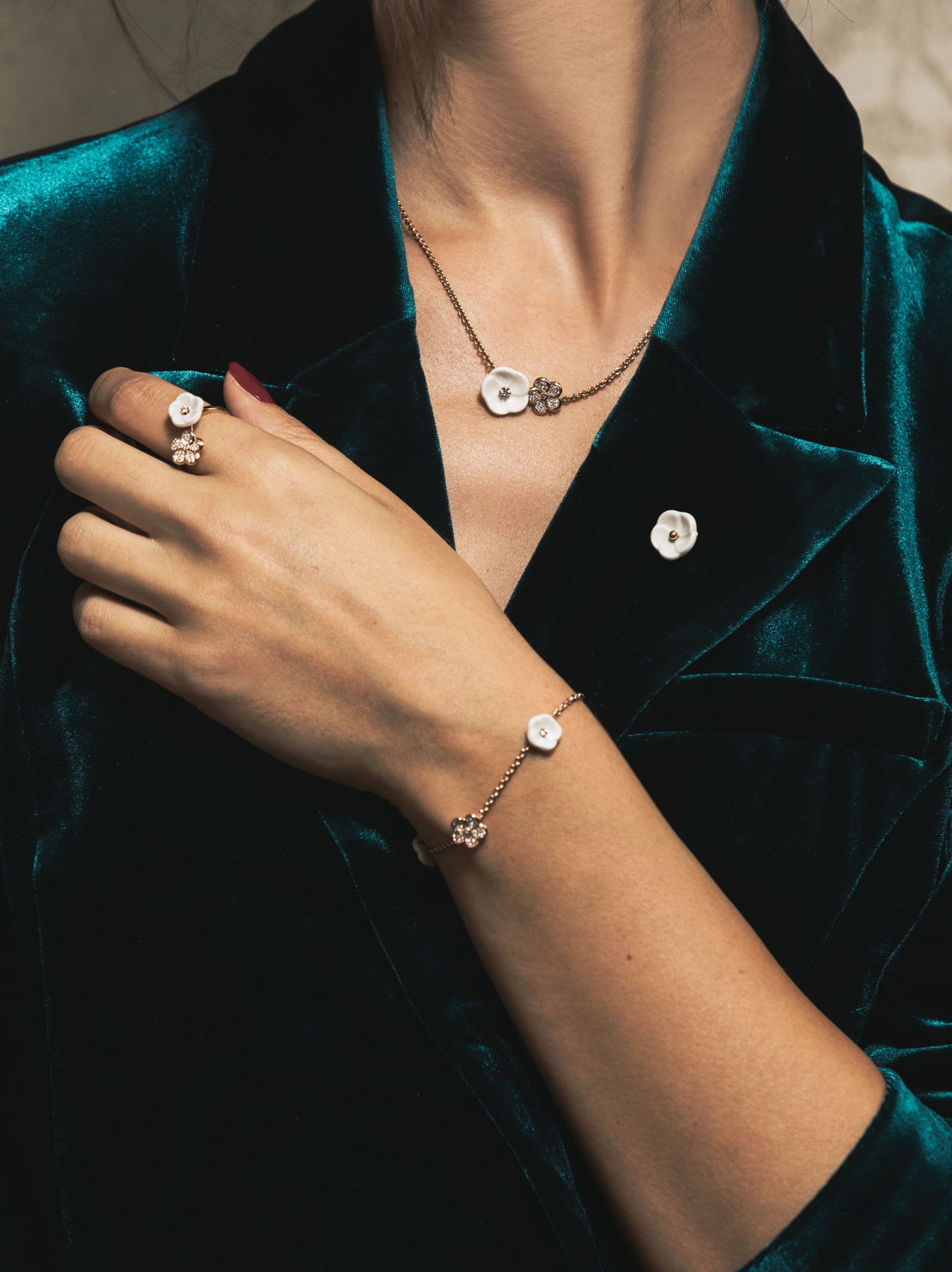Als Zeichen der Liebe wurde die filigrane Blüte von Kaendler im Jahr 1739 geschaffen und ziert seitdem viele bedeutende Kunstwerke der Manufaktur. Die „1739 Royal Blossom“-Kollektion lässt diese Tradition in neuem Licht erstrahlen und verleiht ihr durch die Verwendung hochwertiger Materialien eine moderne, elegante Note. Ob als Ring, Kette oder Ohrring – die zarten, schneeweißen Blüten sind nicht nur ein Tribut an die Liebe, sondern auch ein zeitloser Ausdruck von Schönheit und Exklusivität.