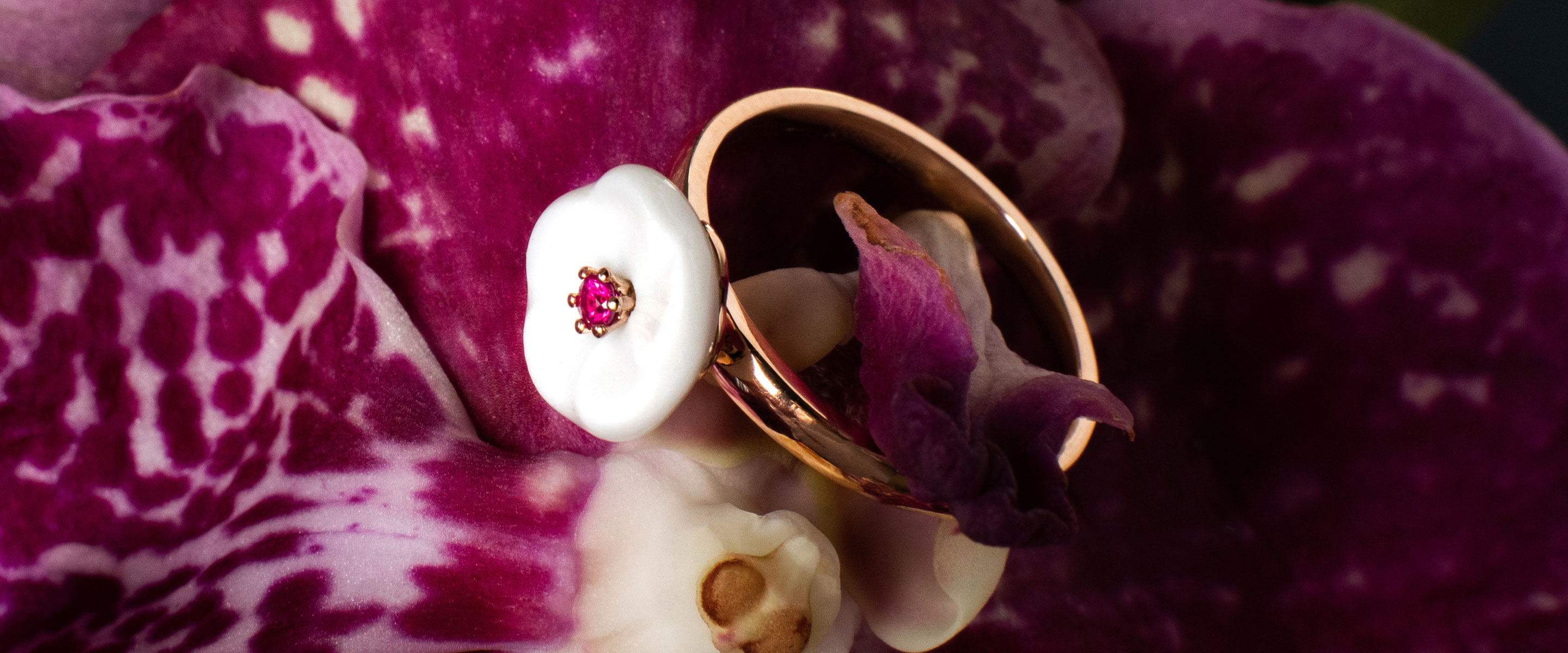 Sind Sie auch Feuer und Flamme für „Viva Magenta“? Dann entdecken Sie die Kombination von rotem und weißem Gold und kreieren Sie mit MEISSEN und der Farbe des Jahres markante Statements voller Leuchtkraft und Optimismus. Sowohl Silber- als auch Goldschmuck können perfekt mit der Trendfarbe kombiniert werden und so sind die Schmuckstücke der „1739 Royal Blossom Basic Rubin“ Kollektion die perfekte Wahl für alle, die ihrem Auftreten Selbstsicherheit verleihen wollen. Auf Tisch & Tafel wird das leuchtende Gerbera-Dekor der „Giant Bloom“ Kollektion zu einem kraftvollen Statement und auch der Panther „Giant Bloom“ zieht alle Blicke auf sich.