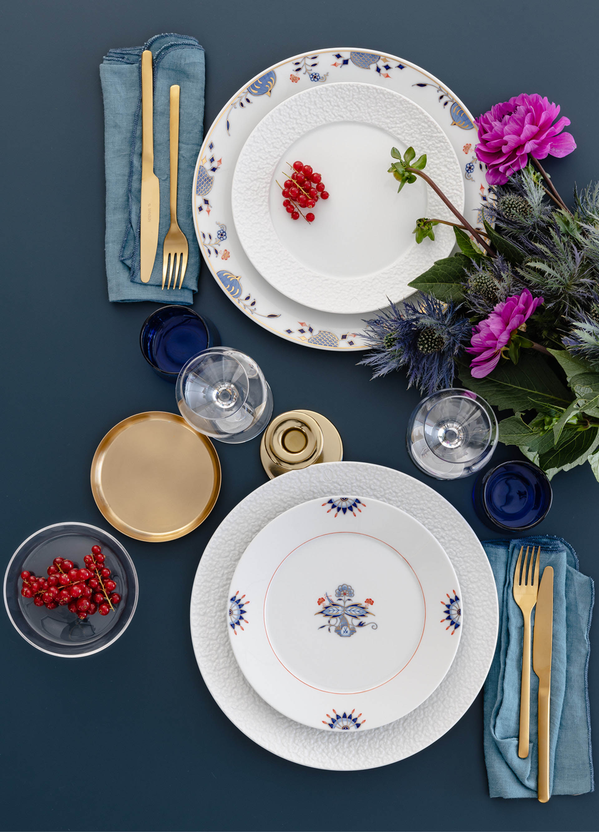 [category_two_mirror_image_description] => In „Noble Blue“ widmet sich MEISSEN einem ihrer berühmtesten Dekore, dem ikonischen „Zwiebelmuster“, welches ab 1731 in der Manufaktur entsteht. Inspiriert von ostasiatischen Porzellanen jener Zeit zeigt es tatsächlich keine Zwiebeln, sondern exotische Früchte und Blüten. Deren Anordnung innerhalb des Dekors liegen fest. In „Noble Blue“ werden jene klassischen Elemente nun aufgegriffen und erstmals neu arrangiert. Ihren Platz finden Sie auf der puristischen Form „N°41“.