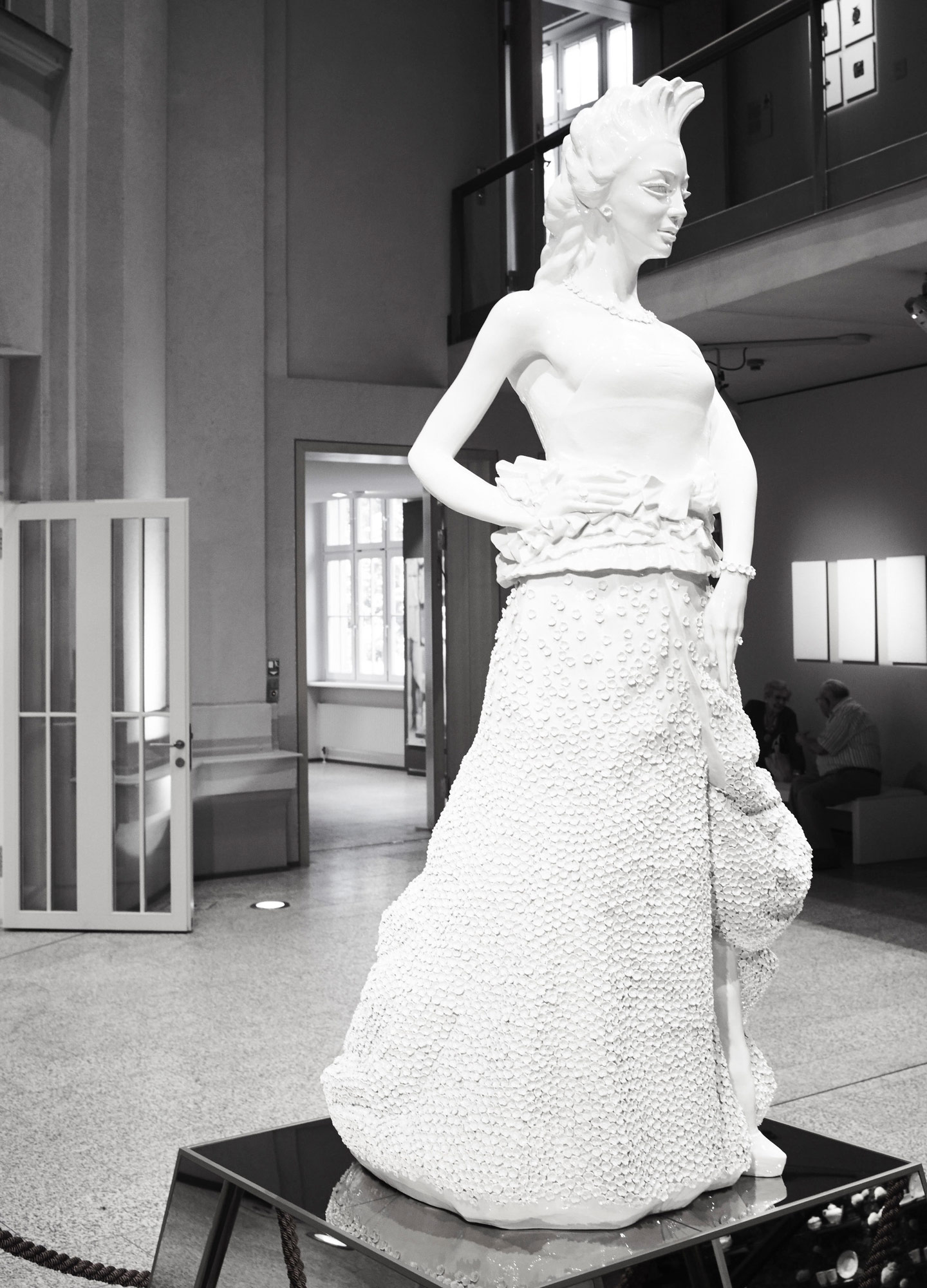 SaxoniaZum 25. Jahrestag der deutschen Wiedervereinigung setzt MEISSEN der Handwerkskunst in Sachsen ein Denkmal – unter der Federführung des ehemaligen Chefplastiker Jörg Danielczyk entsteht mit „Saxonia“ die größte freistehende Porzellanskulptur der Welt. Insgesamt 8.000 handgeformte „Schneeballblüten“ – ein historischer Dekor der Manufaktur aus dem Jahr 1739 – zieren das Kleid der „sächsischen Freiheitsstatue“, die mit 800 Kilogramm und 1,80 Metern Höhe eine Höchstleistung der Porzellangestaltung darstellt. Ihre Herstellung in Lebensgröße fordert Jörg Danielczyk und allen beteiligten Gewerken der Meissener Manufaktur handwerkliche Meisterschaft ab. Allein drei Wochen benötigt die Skulptur für den Brand.