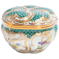Die Meisterwerke Kollektionen von MEISSEN umfassen Porzellan Accessoires aus über 300 Jahren Manufakturgeschichte. Von Wiederauflagen historischer Originale bis hin zu Neuinterpretationen einstiger Stücke mit zeitgenössischen Dekoren: jedes Stück ist zugleich Zeugnis des gestalterischen Genius wie Rückbesinnen auf das eigene reiche Erbe der ältesten Porzellanmanufaktur Europas. Das Formenrepertoire reicht dabei von Schalen, Schüsseln, Kannen, Figuren, Flakons und Dosen bis hin zu ausgefallenen Stücken wie Tabatieren, Senf- und Tintengefäßen, Pokalen und Schreibsets. Die aufwändigen Dekore – historische „Chinoiserien“, die ikonischen „Schneeballblüten“, Landschafts- und Figurenmalerei oder freie zeitgenössische Motive – setzen in jedem Raum ein eindrückliches Highlight und Blickfang für Liebhaber exquisiten Kunsthandwerks.
