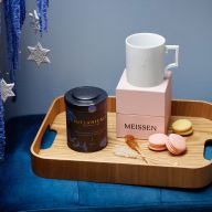 Geschenksets von MEISSEN sind einzigartige Kompositionen in Porzellan und Gesten der besonderen Zuneigung, in denen eine Wertschätzung für Kunsthandwerk und Tradition eindrücklich zum Tragen kommt. Eben diese geteilte Wertschätzung ist Grundlage der Kooperation mit dem sächsischen Weingut Schloß Wackerbarth. Zusammen mit MEISSEN entstand ein Glühweinset bestehend aus zwei filigranen Henkelbechern und edlem Glühwein für festliche Winterabende. Das Schreib-Set aus der Kollektion „Neuer Ausschnitt“ hingegen bringt Brieföffner und passende Schale als geschmackvolle Einheit zusammen. Mit dem prominenten Manufaktursignet, den Gekreuzten Schwertern, steht sie sinnbildlich für die über 300-jährige Tradition der Porzellanmanufaktur Meissen.