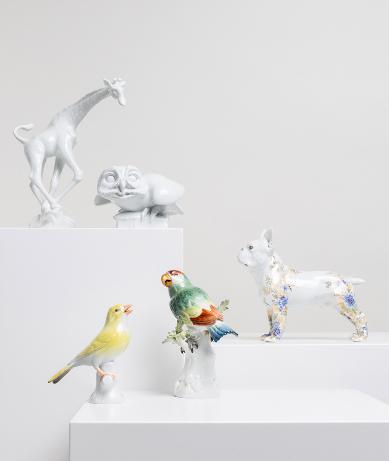 FigurenDas Meissener Formenarchiv, Herzstück der Manufaktur, bewahrt Formen für rund 9.000 Plastiken aus 300 Jahren Meissener Geschichte auf. Ihren Anfang hat diese Vielfalt in der Kreativität der Meissener Künstler des 18. Jahrhunderts, als um 1730 die sogenannte plastische Periode der Manufaktur beginnt. Mit ihr verschiebt sich der künstlerische Schwerpunkt von Nutzwaren nach ostasiatischem Vorbild auf die Produktion von Großplastiken, angefeuert von August dem Starken und der Ausschmückung des Japanischen Palais zum repräsentativen Porzellankabinett. Diese Periode ist unmittelbar verknüpft mit dem Namen Johann Joachim Kaendler, der 1731 nach Meißen kommt. Als Modelleur von lebensgroßen Tierplastiken macht er sich schnell einen Namen, widmet sich den anspruchsvollen Aufträgen des Kurfürsten und modelliert in rascher Folge epochale Objekte, die die Grenzen des Porzellans neu definieren.