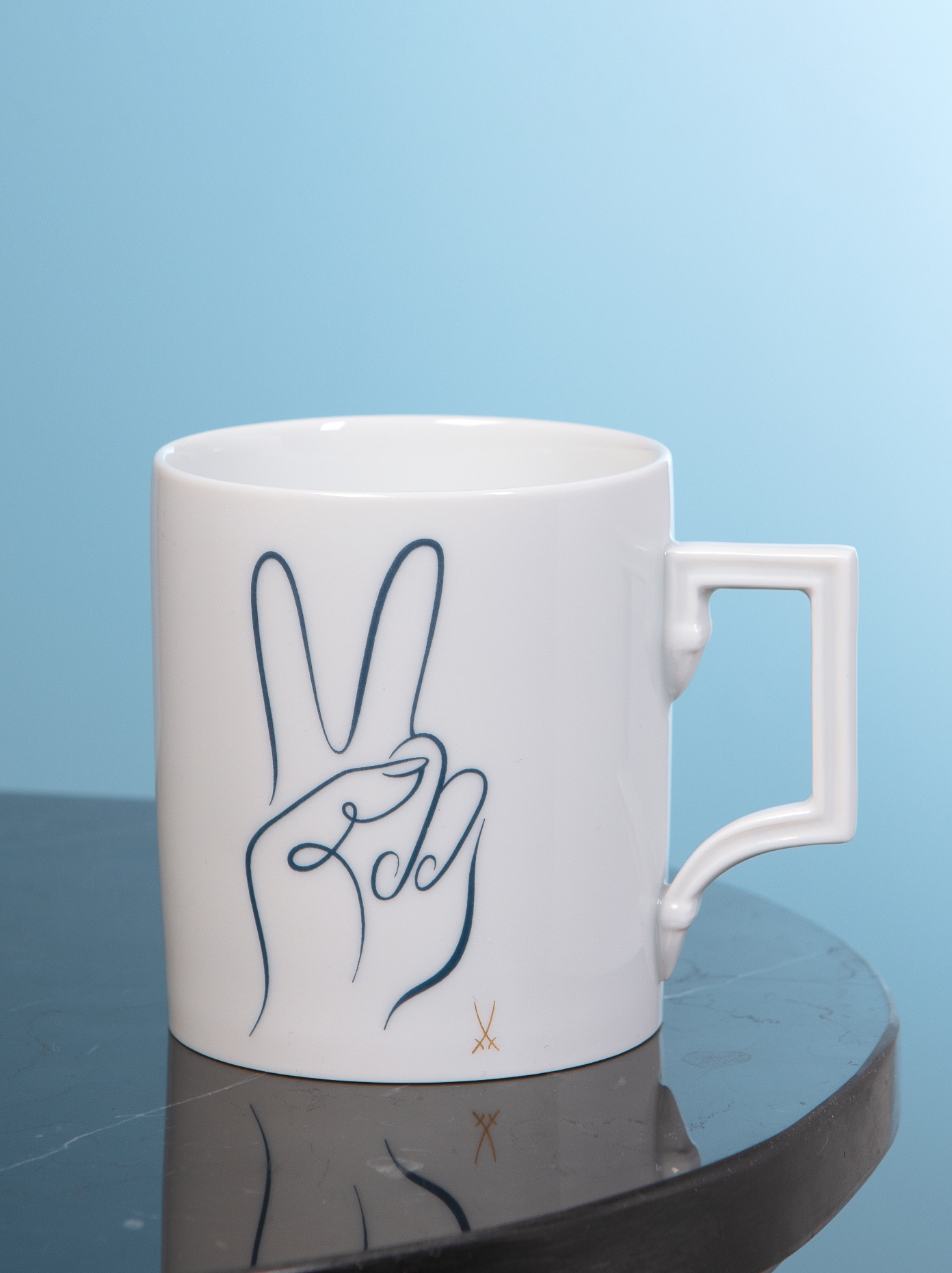 To send a message of solidarity and peace and to make a small contribution to supporting the people in Ukraine, our talented drawing students have reinterpreted the peace symbols and immortalised them on our iconic mug. Three different peace designs in blue or gold now adorn our popular mugs. They are a sign that we as MEISSEN stand together with you for peace and carry around the world a symbol of hope that unites us all. Our extraordinary wall-painting "Peace Dove" has also been reinterpreted and is part of our fundraising campaign.
