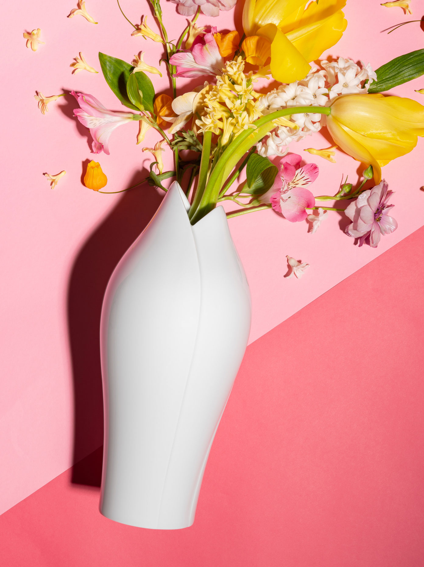 • In some cases, it is advisable to combine flowers and vases in an appealing variety to create an impressive overall composition - and sometimes less is simply more. Limited edition masterpieces, such as the “Vase Exotic 1“ are true showpieces of porcelain art and radiate such an impressive presence that they impress on their own. The vase of the „Antarctica“-collection, in turn, is perfect, for complex arrangement with numerous vases and diverse flowers. No wonder, because its unique shape was inspired by penguins - and these, after all, appear in colonies and are a symbol of community and cohesion.