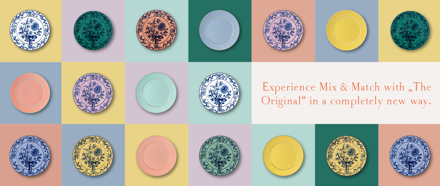 The Perfect MatchBe inspired by our personal “Perfect Matches” or become the designer of your own festive table. Combine classic designs such as the iconic blue onion pattern with the Uni plates in the color pink, for example, for a fresh, youthful look. The dragons from MEISSEN, whether the rich dragon or the world-famous Ming dragon, once appeared in all different colors on “White Gold” - so service can be combined without hesitation with all associated colors of the plain series from “The Original” collection. And the MEISSEN rose? Mix & Match with the celadon green Uni plates to create a unique romantic atmosphere - the “perfect match” on the dining table for your “perfect match” at the dining table.