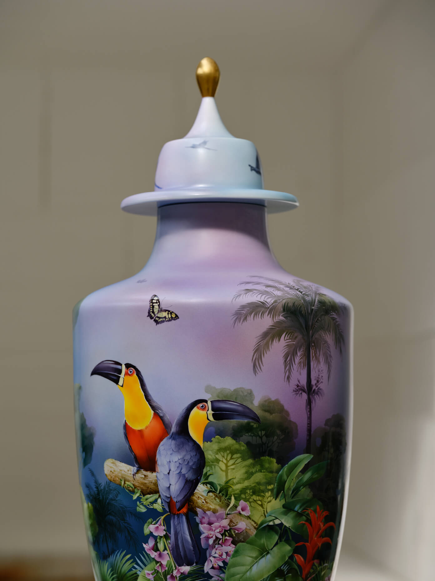 When tropical rainforest meets unique handicrafts, the result is colorful passion in the highest porcelain quality.