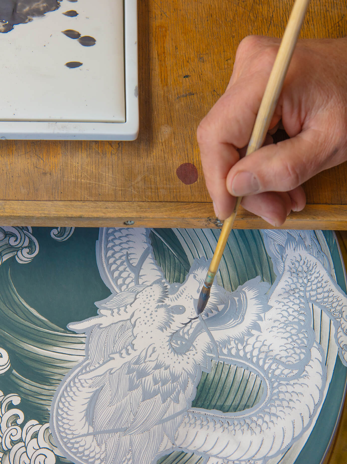 The "Red Dragon", known today as the "Red Court Dragon" or "Ornate Dragon", was one of the early Oriental Paintings around 1730. The inspiration was found in Japanese porcelain, enriched with numerous symbols of East Asian culture and initially applied to tableware. While the first version with the iron-red dragon and golden details was intended exclusively for the Saxon court, different colored versions of the decoration in black, blue, yellow, green, purple and violet were also produced for the public from 1858 onwards. It was only with the shifts in political power around 1918 that this exclusivity was completely lifted and the decoration was made available to all lovers of Meissen craftsmanship in the iconic red.