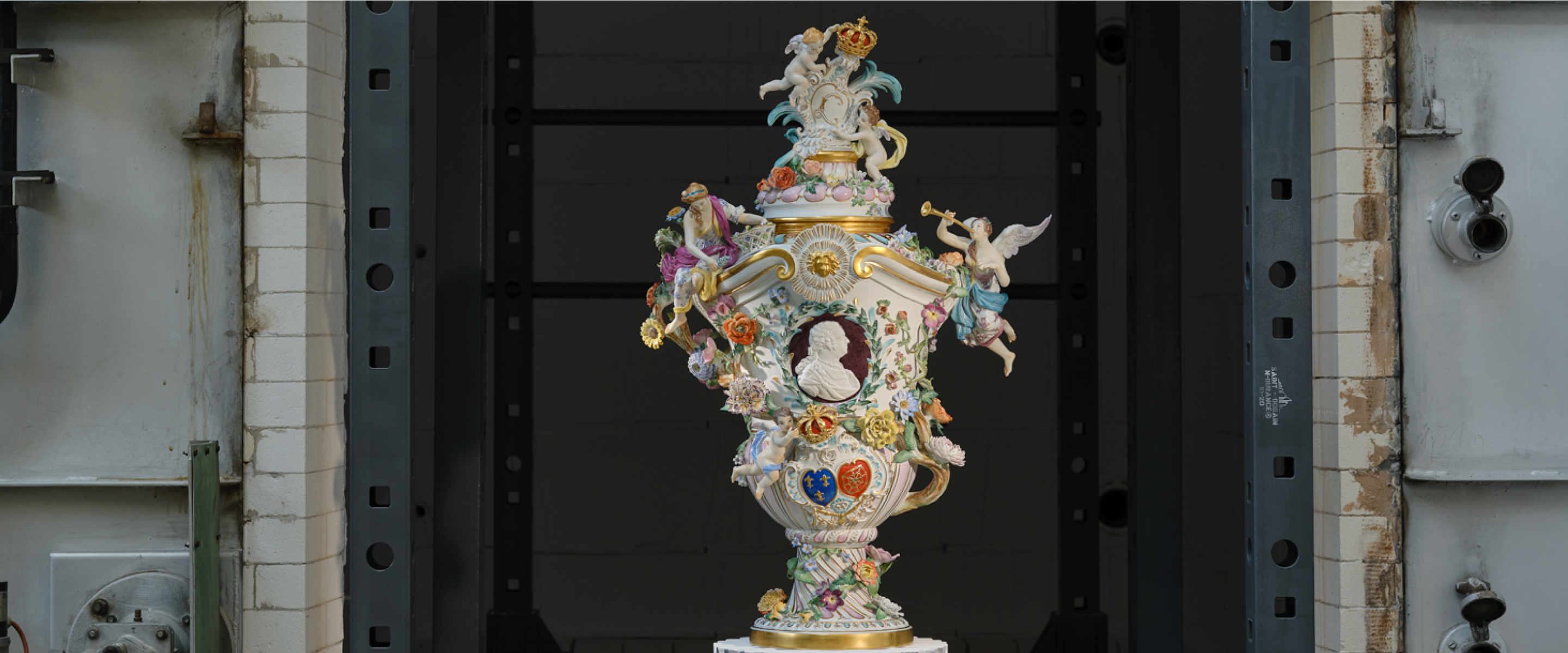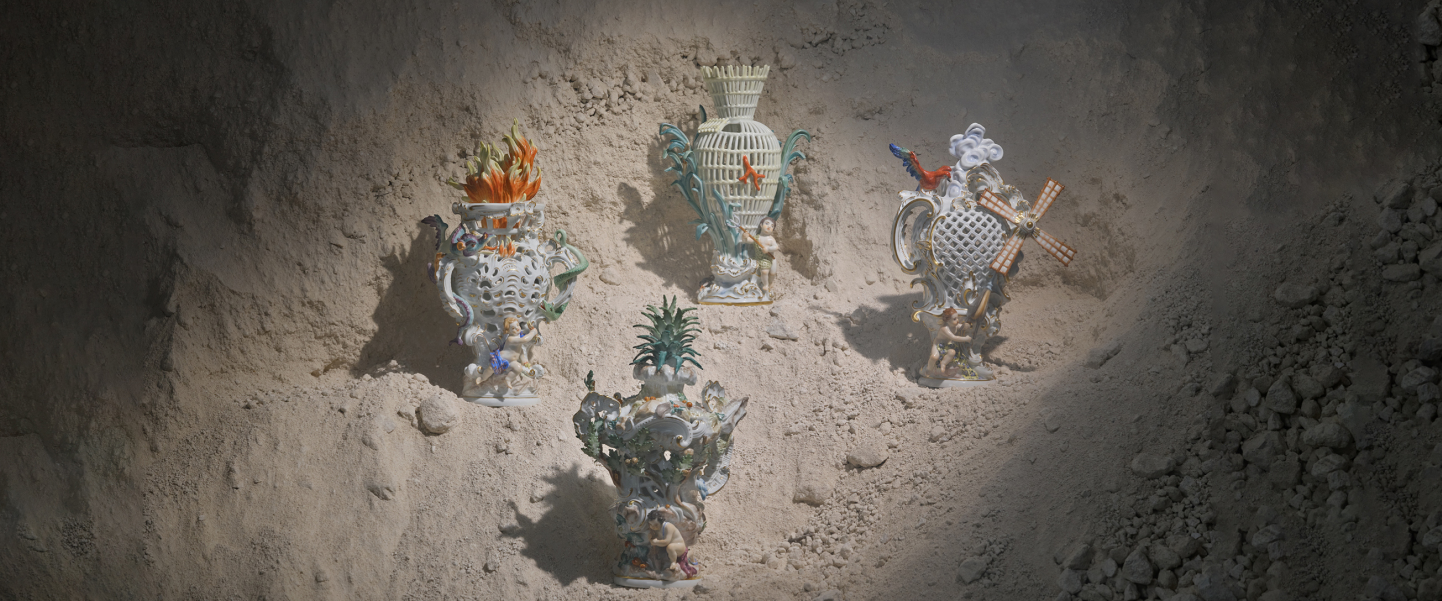 In this cultural climate, Saxony's Elector Frederick Augustus III, son of the legendary Augustus the Strong, commissioned the famous model master Johann Joachim Kaendler to design a series of magnificent element vases for the French king in 1741. The result was a set of four large element vases and a central center vase. As a gift from the MEISSEN porcelain manufactory to the monarch, these magnificent vases symbolize not only the wealth and power of the French kingdom, but also the close connection between the ruling houses of Europe and Europe's leading art manufactories.