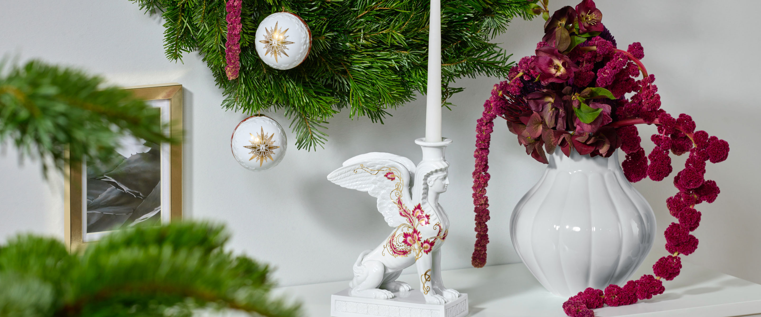 Without further ado, the curious creature made its way towards the living room, where the impressive Christmas tree was already standing - a multitude of gleaming white ornaments, such as the bell with relief, the "MEISSEN Christmas Star" bauble and lots of stars shone in the magical glow of the softly glowing fairy lights. Each individual piece on the magnificently decorated branches literally brought the tree to life and immediately gave the curious creature a warm and cozy feeling of security. Memories came flooding back to him - of proudly helping to hang the baubles himself. Of how the whole family had spent the last few years around the tree in a cheerful mood, until later there was probably the most delicious meal ever cooked. And, of course, the little mystical creature also remembered the countless presents, all of which it was allowed to unwrap with great enthusiasm.