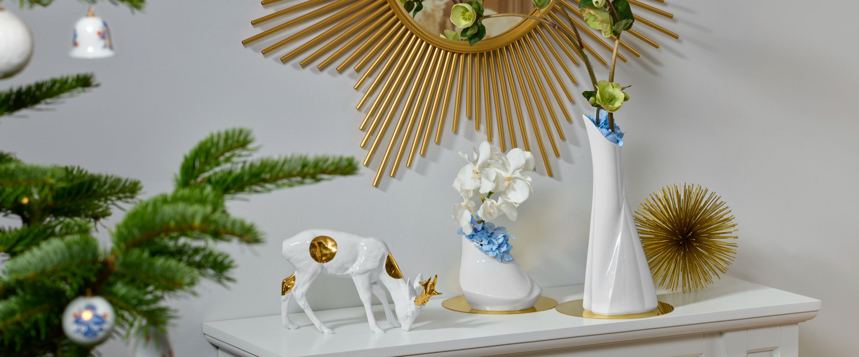 At first, it moved through the hallway with the utmost caution, past cupboards that were far too high and on top of which rested the most beautiful treasures made of the most radiant porcelain that the curious creature had ever seen. The squirrel with the golden arcanthus and the snow-white owl with a golden beak and the purple pedestal are just a few of the many figures that enveloped the room in a wintery, Christmassy aura.