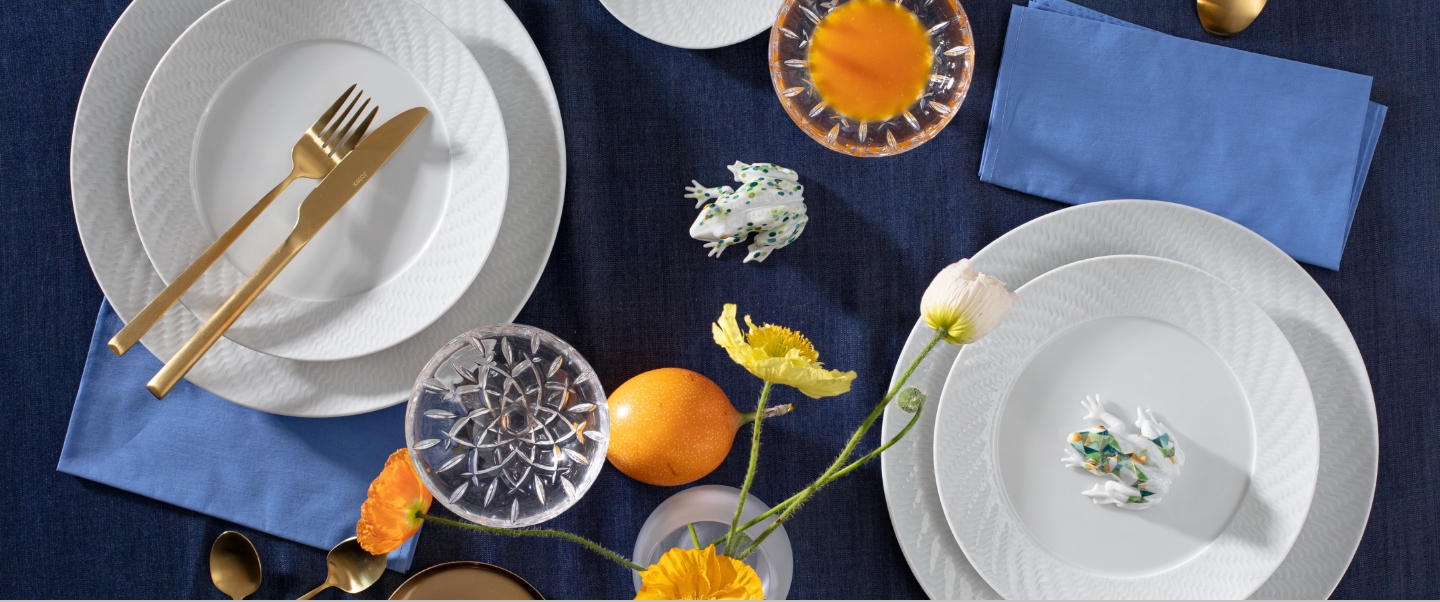 With "N°41 Waves Relief", the straight lines of the "N°41" shape are now combined with the sweeping relief of the popular "Waves" shape to create a completely new look and bring a maritime flair to your table.