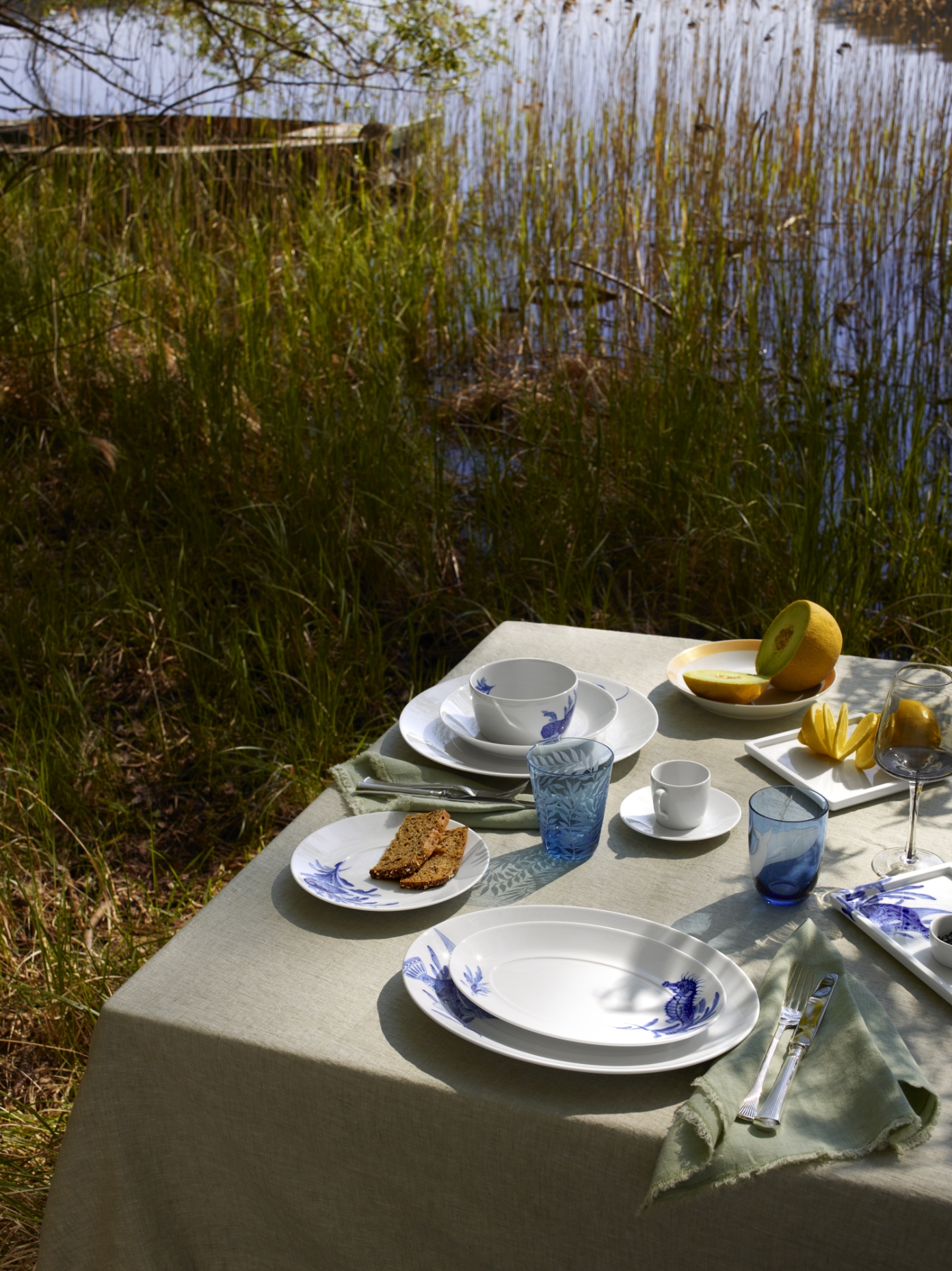 Many Meissen designs and techniques take advantage of this beguiling effect. The crystal glaze technique, which is one of the most difficult design methods, produces an aesthetic of imperfection, the appeal of which lies in its ability to reflect the light, its evocative nature, and its spectral depth. The “MEISSEN Blue Treasures” collection, which interprets a historic design on a contemporary dishware set, radiates a summery lightness and a longing for the ocean.