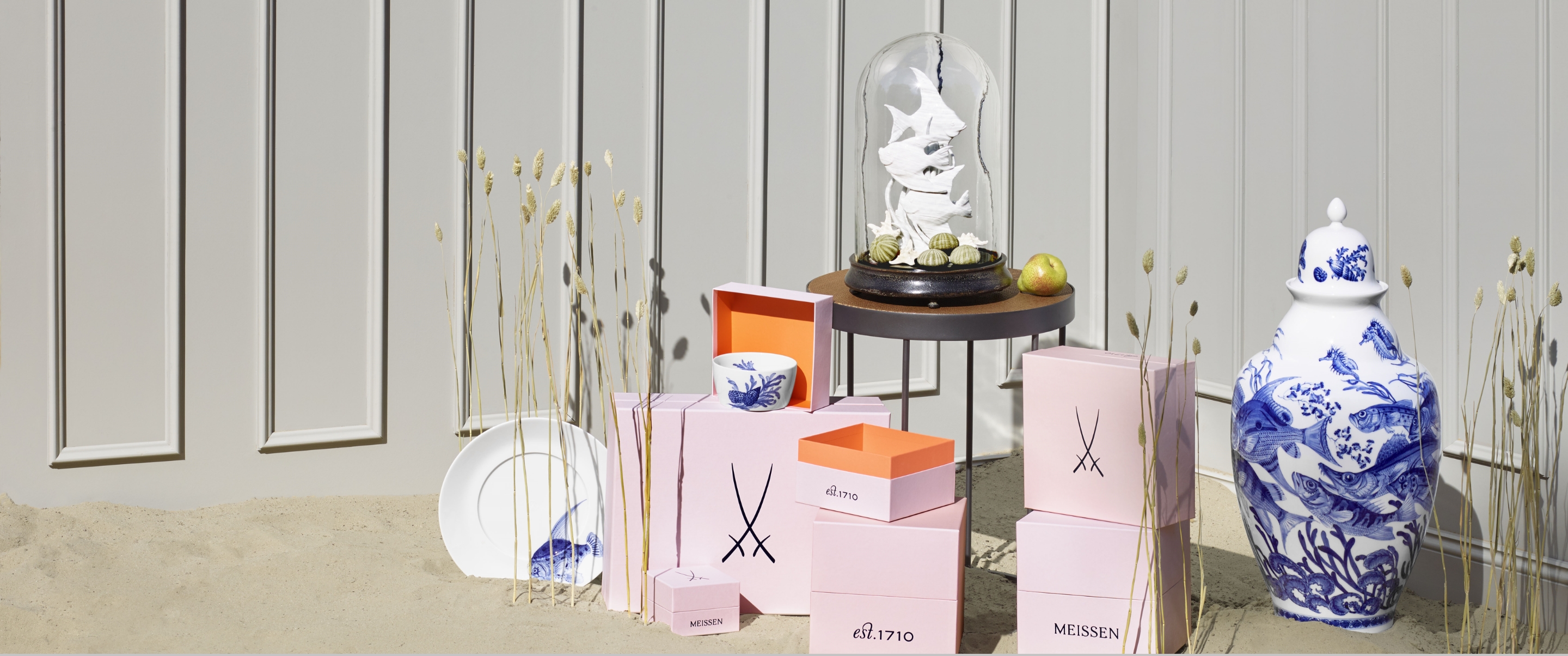 The sleek silhouettes of the “MEISSEN® Cosmopolitan” series are adorned with lively underwater motifs such as lobsters, seashells, fish and seahorses that hold a particular allure. The vivid hand-painted ocean motifs are captured using Meissen’s signature cobalt blue and a flurry of fluid, dynamic brushstrokes that emulate the flowing movement of water itself. Be inspired by the wide variety of designs and the soothing effect of Meissen’s blue patterns and bring peace and tranquillity into your home.