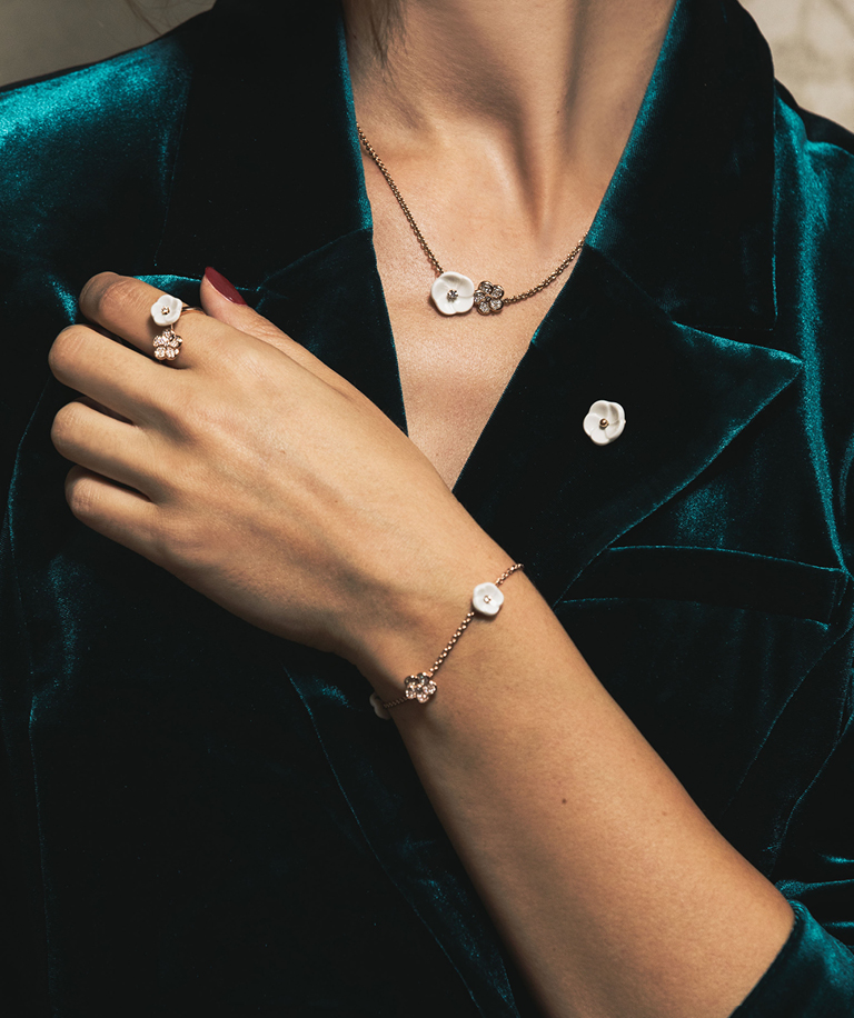 Jewellery is not just a fashion accessory, it can be a companion or lucky charm that gives us strength by reminding us of our most beautiful moments. It carries emotions and emphasizes the uniqueness of its wearer in a very individual way. The stories it tells make us shine and give us a whole new sense of self-confidence. This effect was already known in the early years after the founding of the MEISSEN porcelain manufactory, so that jewellery production from the newly discovered material began even then. Then as now, classic motifs and decorations are combined with contemporary design language to create an unmistakable beauty.