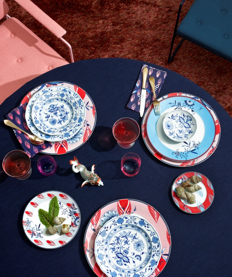 One of the most famous decors of Meissen craftsmanship is the "Blue Onion". It was created in 1731 and comprises a wealth of nature motifs, symbols and parables. In this decor, the three blessed fruits are depicted, following the East Asian model: pomegranate, peach and citrus fruit. The peach was regarded as a sign of vitality, the pomegranate as a symbol of fertility and the citrus fruit as a Buddha symbol. All three of these fruits were cultivated in the European orangeries of the nobility in the 17th and 18th centuries. But whether the Far Eastern meaning of the fruits was known is doubtful, because the pomegranate and the citrus fruit have merged in the design over the years and now resemble more a melon. Today, the "Blue Onion" is an expression of the genius and inventive spirit of Europe's most traditional porcelain manufactory and is taken up again and again in the various decorations.