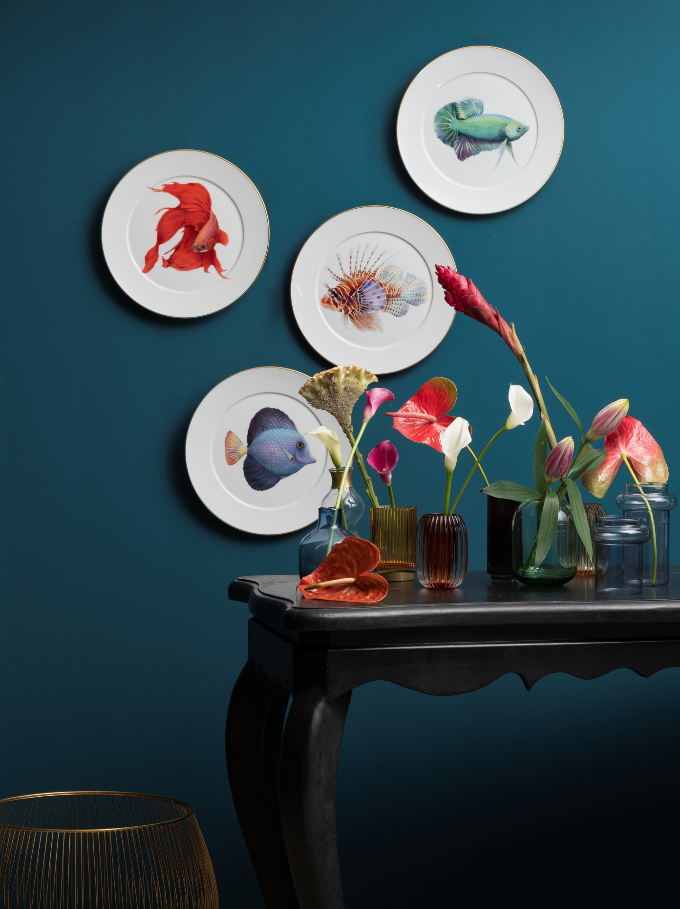 Exotic coral inhabitants, on the other hand, are the focus of Andrea Mauersberger's maritime wall plate series. For the first time, the Meissen artist combines a traditional technique, onglaze painting, with a modern style of painting on the clear, minimalist shapes of the "MEISSEN® Cosmopolitan" service and captures the colourful sea creatures in all their unique beauty. Highlights in the eyes, incoming light reflecting on the scales, colours and shades that change with movement - in these unique Limited Edition paintings, the fascinating fauna of turquoise depths is expressed in sublime craftsmanship for eternity and offers unique decorating ideas for your home.