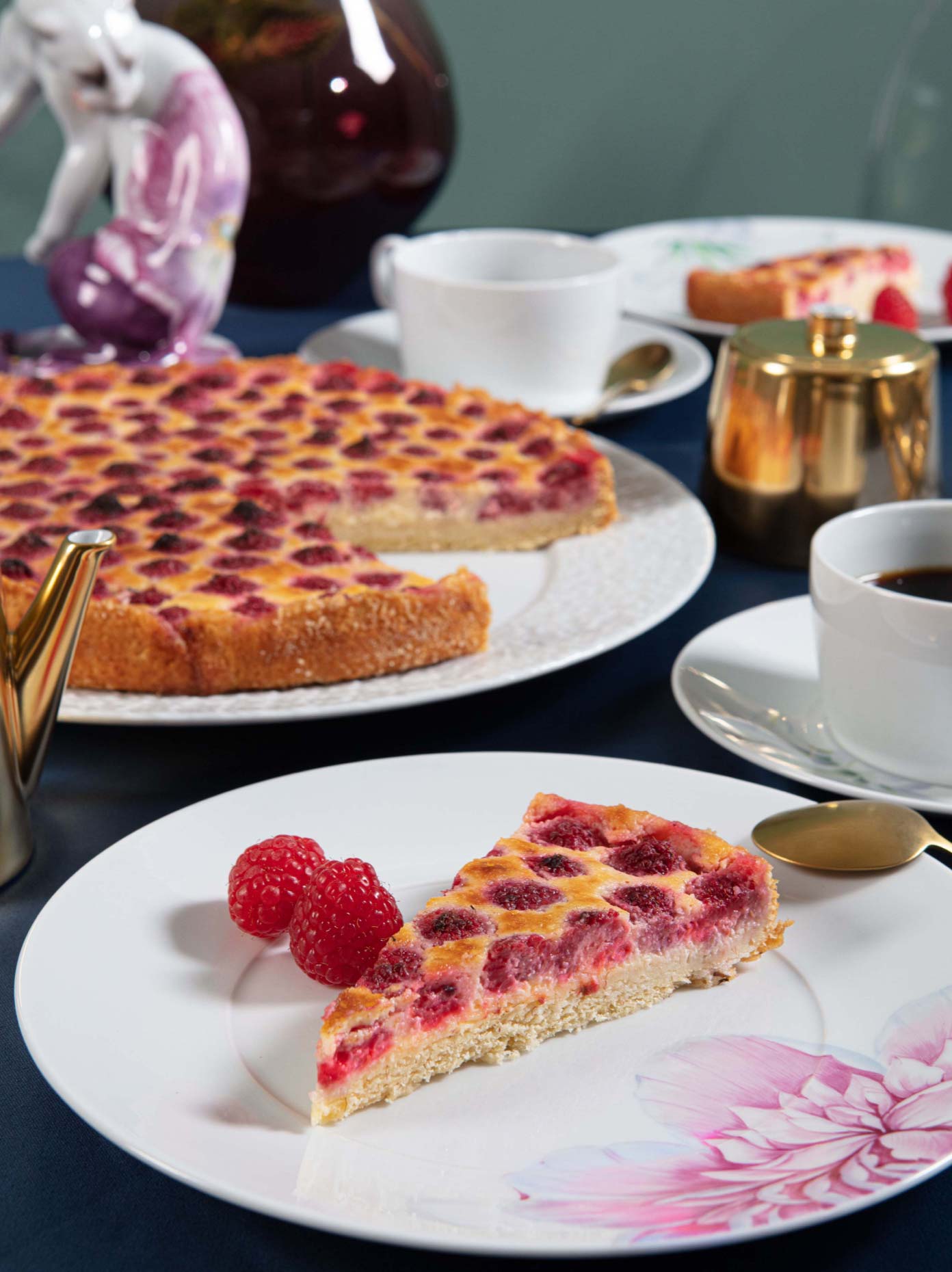 • The easiest way to share happiness with others is in the form of cake! And believe us: the raspberry cake with mascarpone is true happiness from the oven. This recipe is part of the MEISSEN cookbook, which contains a total of 24 sweet and savory recipes from passionate culinary employees at our manufactory. The raspberry cake with mascarpone was created by our apprentice Justine Trodler. Not only does she love creating something eternal with her bare hands, she also shows love and dedication to detail when cooking and baking. Try it out for yourself and experience this dreamlike cake delight - alone or with those with whom you would most like to share your cake happiness.