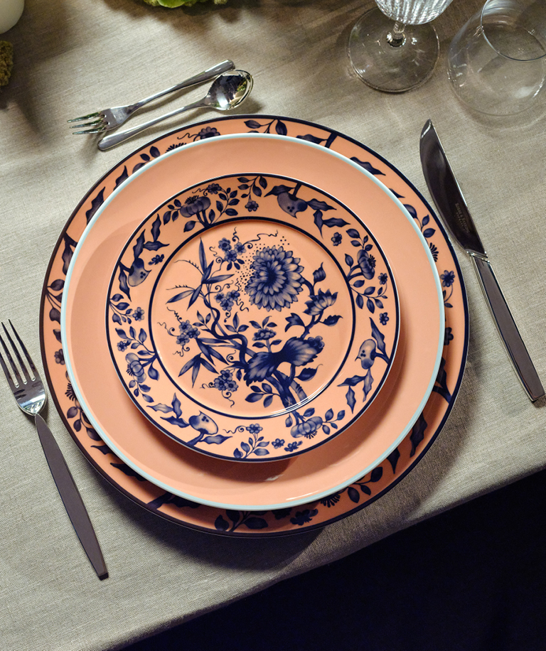 Today, in the 21st century, the blue onion pattern has lost none of its fascination. It continues to stand for timeless elegance and is appreciated in both traditional and modern contexts. MEISSEN has succeeded in adapting the blue onion to new trends without losing the original charm of the pattern. The latest development of this unique icon is “The Original”. The basis for “The Original” is a variant of the blue onion from the years between 1733 and 1735. The Crossed Swords in the bamboo stem were added to the original pattern, which clearly distinguishes the MEISSEN original from possible imitators. The pattern was applied to different colors, which also form the basis for the new MEISSEN “The Original Uni” collection. With the colorful decorations consisting of celadon, yellow, red, pink, blue and petrol, “The Original” is a unique dinner service that is second to none and leads the evolution of the decor into a new era.