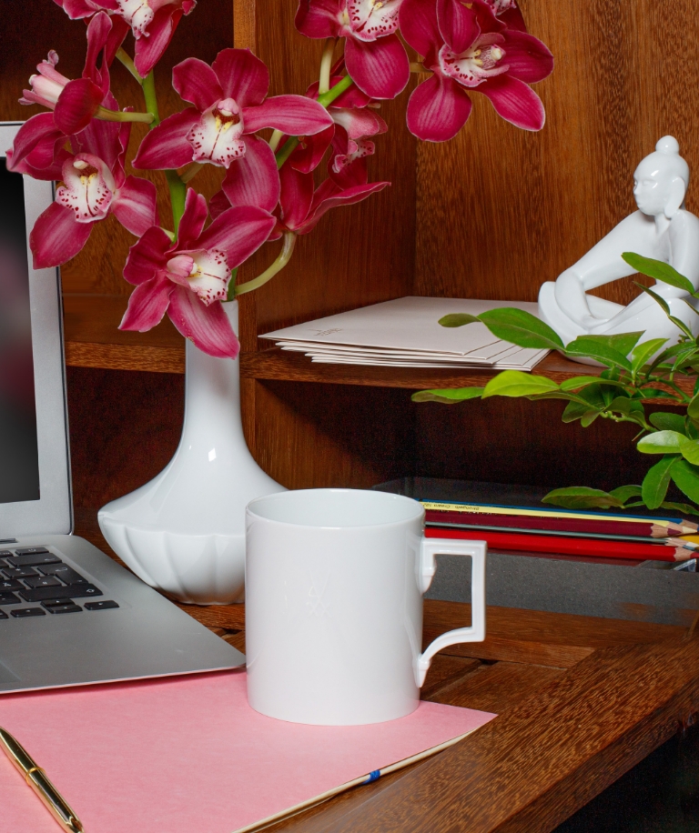 For more inspiration and creativity at the workplace or especially in the home office, the colour can trigger the right vibrations. This means violet promotes the balance between the right and left hemispheres of the brain, which is said to have a positive effect on thought blockades. So surround yourself with an inspiring interiorand floral vitality in violet. Our "MEISSEN® Cosmopolitan Giant Bloom" vase with the hand-painted pansy exudes lightness and joy. With the matching colourful flowers, new thoughts can arise almost by themselves. Another option is to go for a new favourite mug, such as our "Royal Flower" mug with its detailed purple floral decor or the "Ming Dragon Purple" mug, which provides an additional impulse of ideas with its colour scheme and inspiring decor.