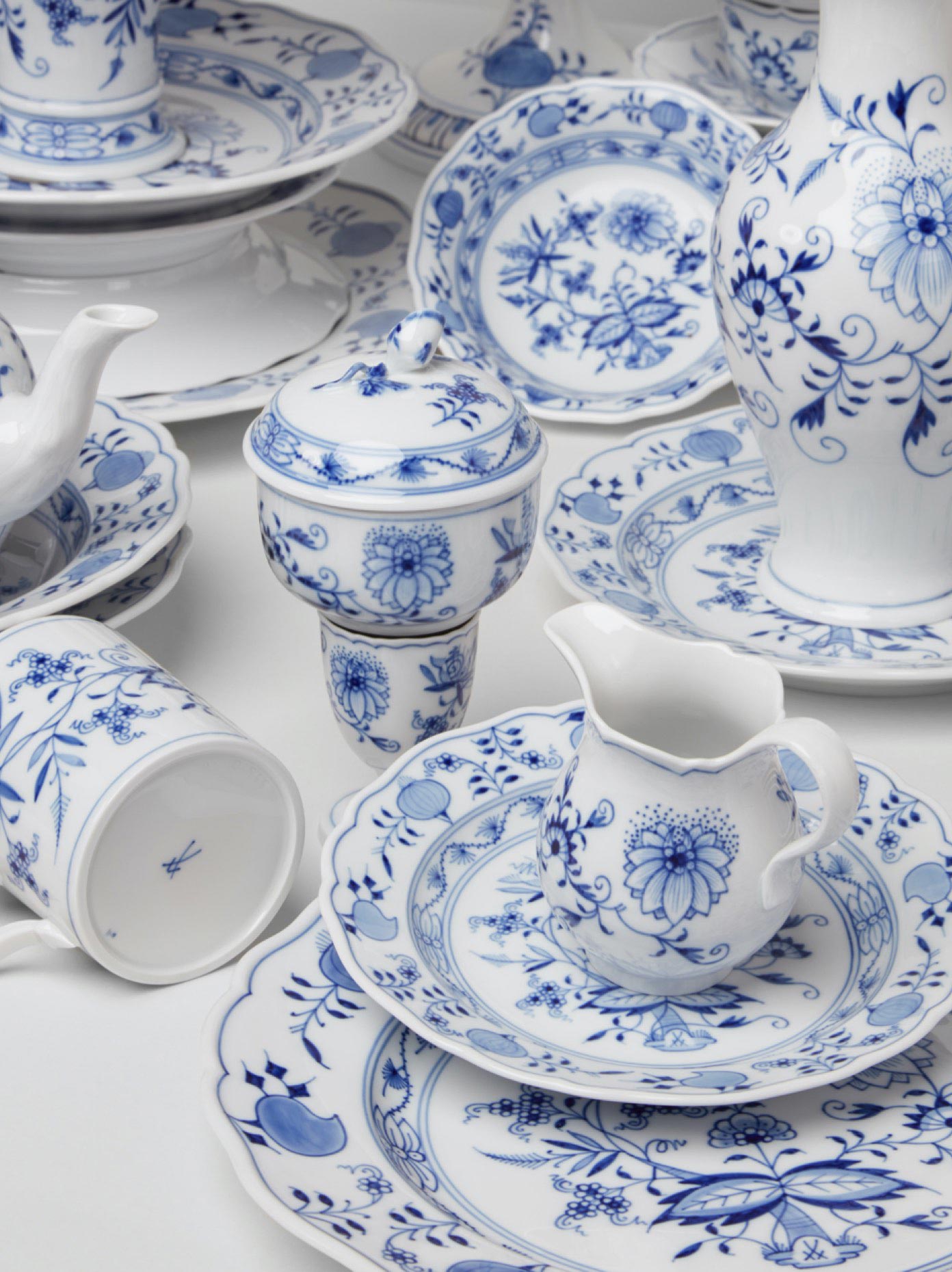 • The history of Meissen’s cobalt blue – which also laid the foundation for the manufactory’s long tradition of blue painting – is directly linked to the development of the "Onion Pattern", the most iconic blue decor in porcelain history. Shortly after the founding of the manufactory in the 18th century, MEISSEN was already striving to find a heat-resistant blue which both emphasised the porcelain’s radiant white while harmonising with it. After a long series of tests, the combination of cobalt and oxygen proved to be extremely resistant. A discovery which in 1739 led to the creation of the world-famous "Onion Pattern". A success story that now includes patterns such as the modern reinterpretation of the "Onion Pattern", the "Noble Blue" series, the delicate "Blue Orchid" or the new "Meissen Blue Treasures".