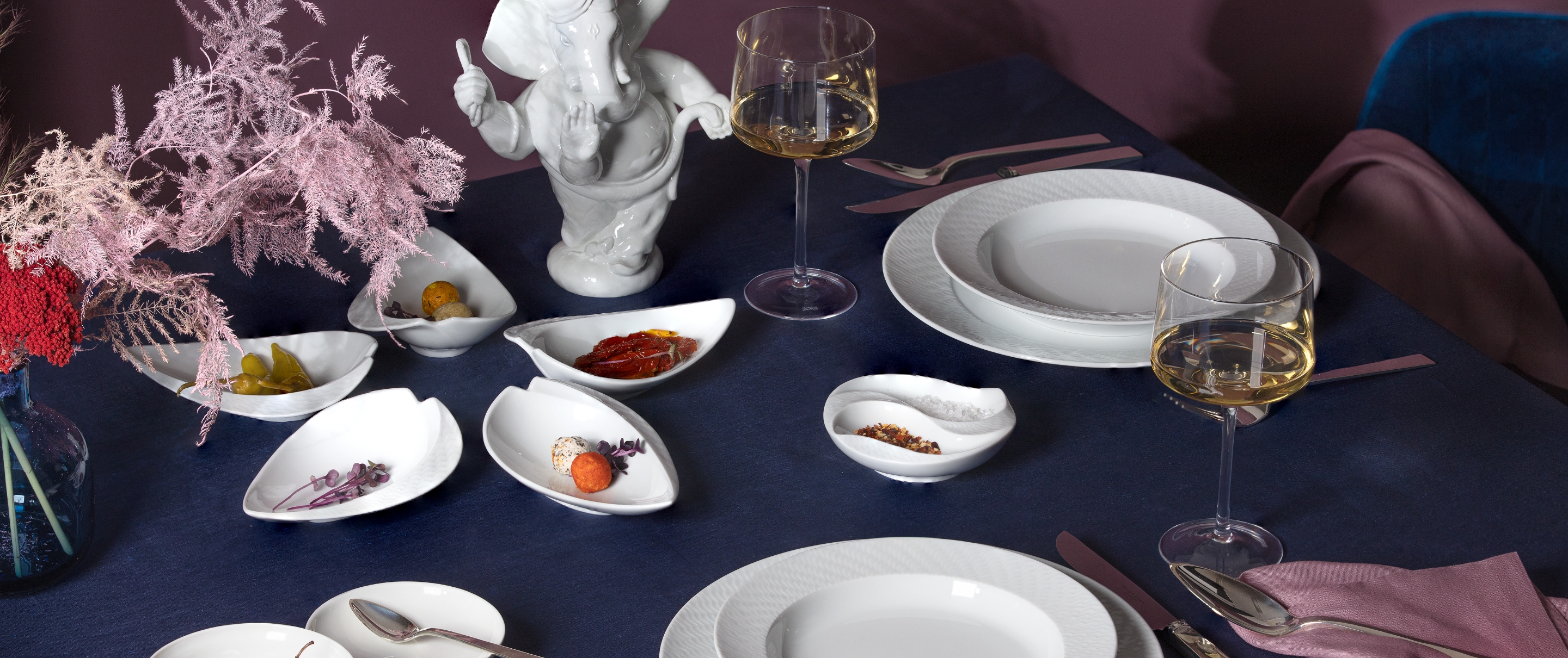 "With its lively dynamics, the “Waves Relief“ service creates a maritime flair and enriches every table with a brilliant shine."